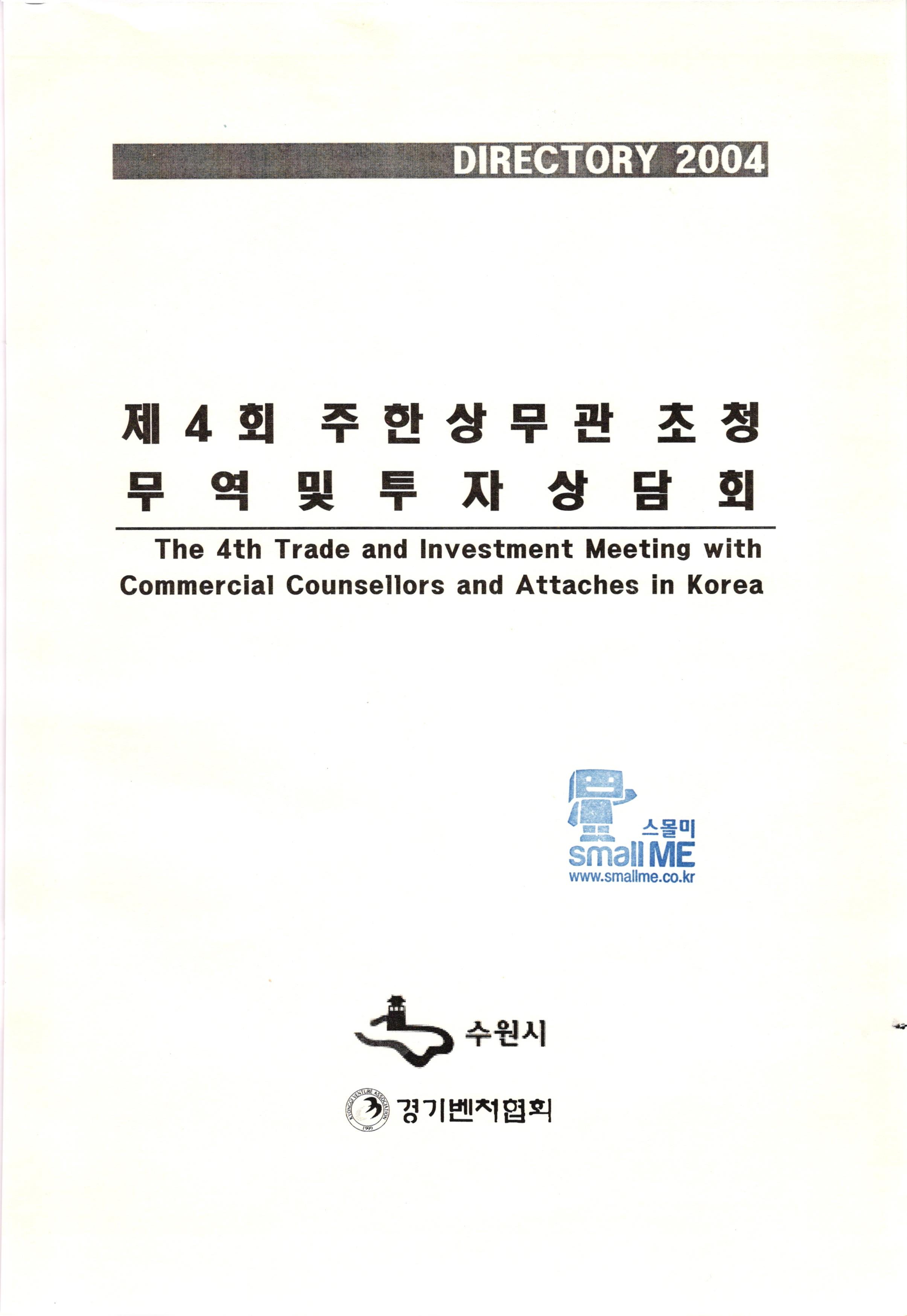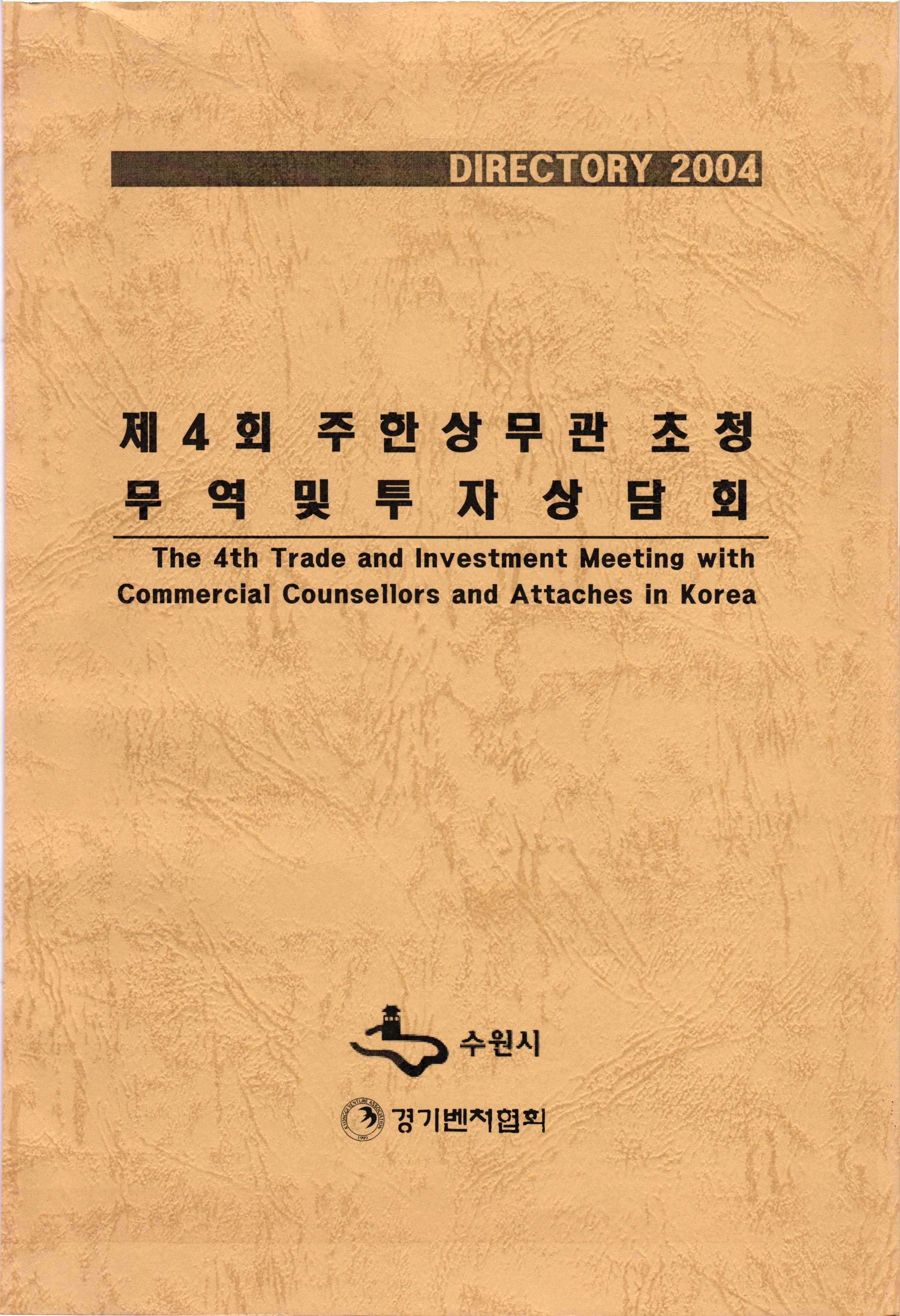 DIRECTORY 2004 제4회 주 한상 무관 초청 무 역 및 투 자 상 담 회 The 4th Trade and Investment Meeting with Commercial Counsellors and Attaches in Korea 수원시 수원시 기 경기벤치협회 ASSOC OCIATION