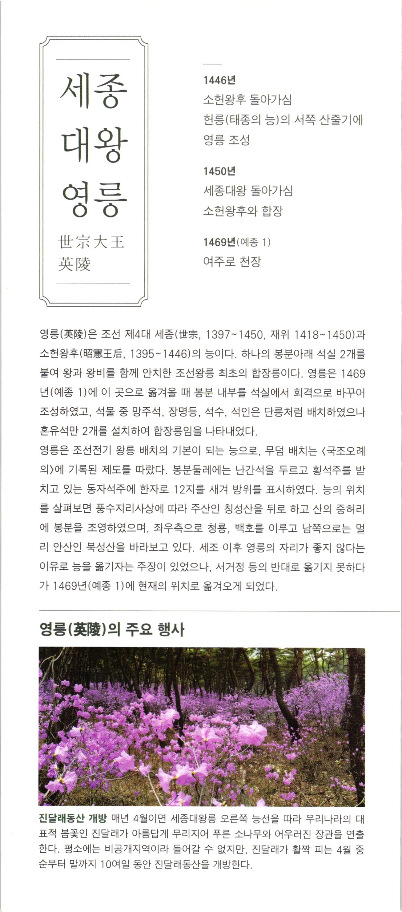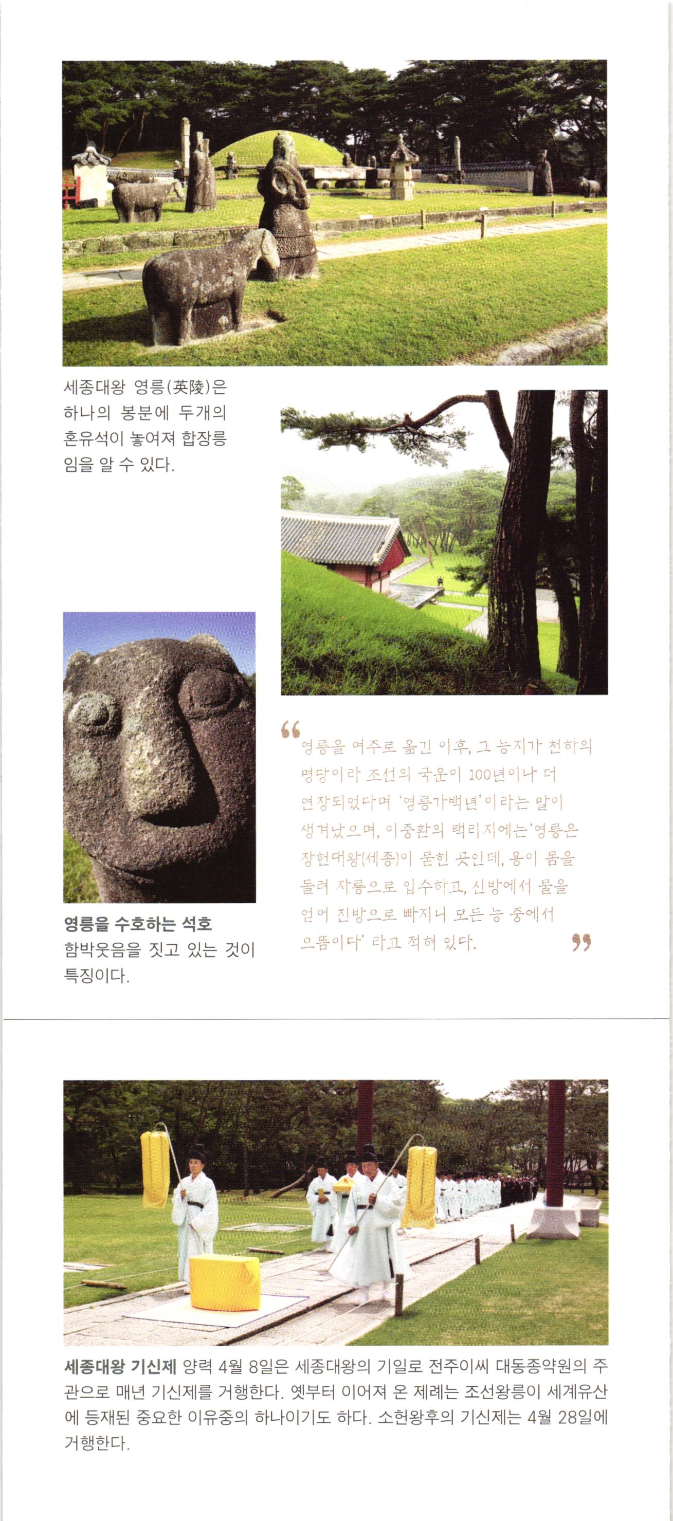 United Nations. World Heritage Educational, Scientific and in the Republic Cultural Organization • of Korea 사적 제195호 세종대왕 영릉 호종대왕 영릉陵 Yeongneung i The royal tomb of King Sejong Yeongneung i The royal tomb of King Hyojong 이 문화재청 세종대왕유적관리소