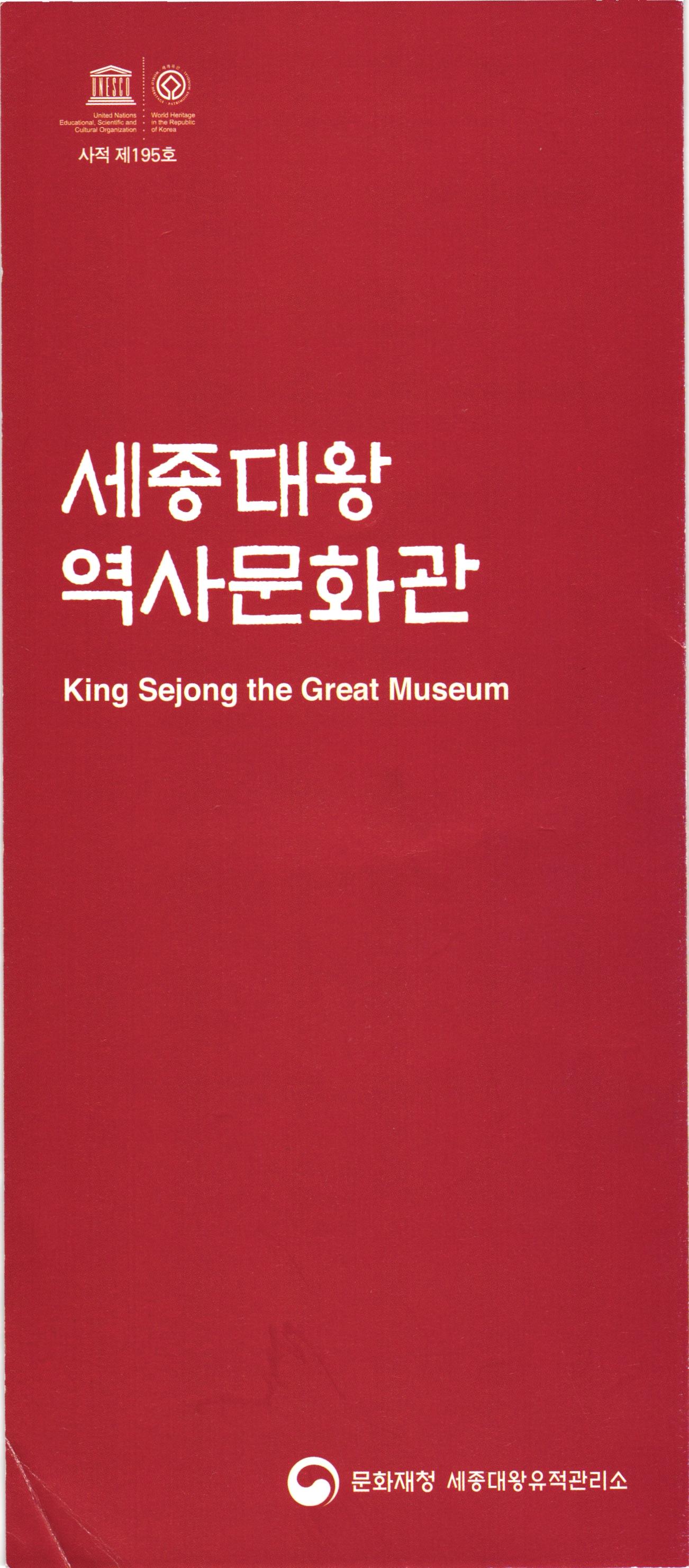 United Nations Educational, Scientific and . Cultural Organization. World Heritage in the Republic of Korea 사적 제195호 세종대왕 역사문화관 King Sejong the Great Museum 문화재청 세종대왕유적관리소