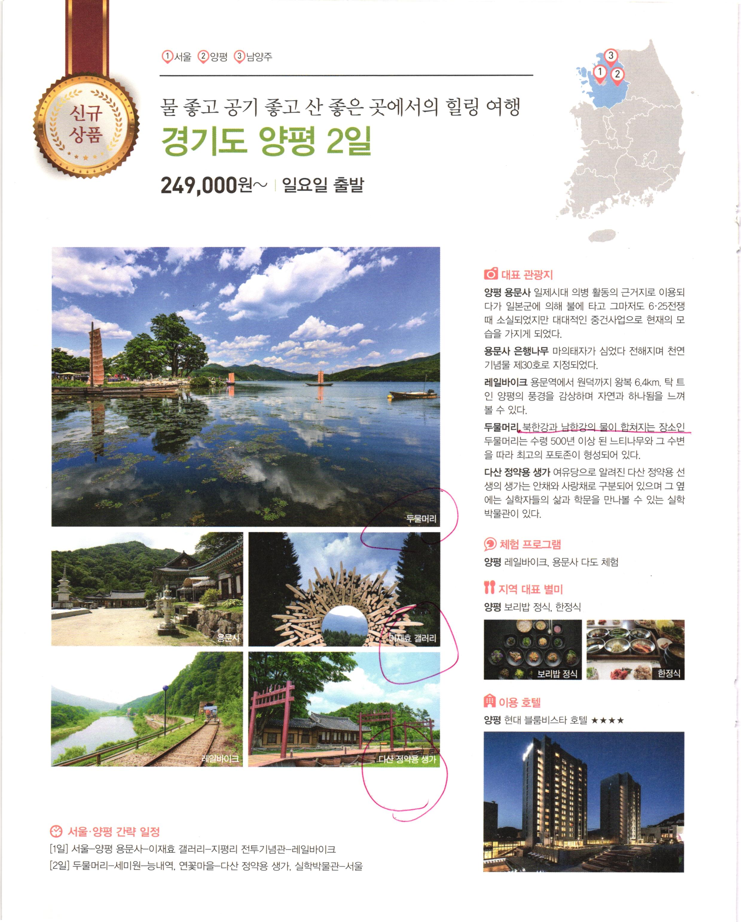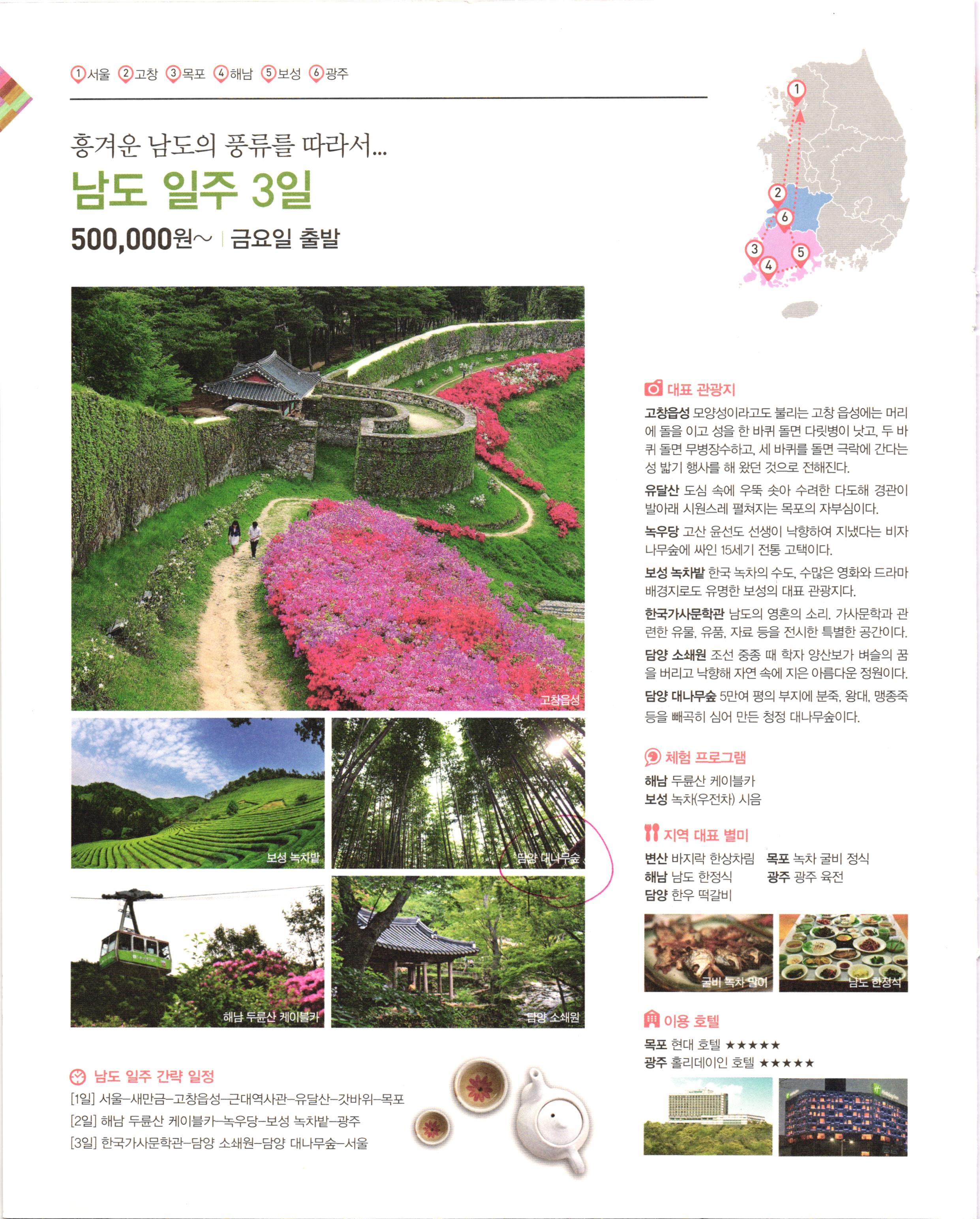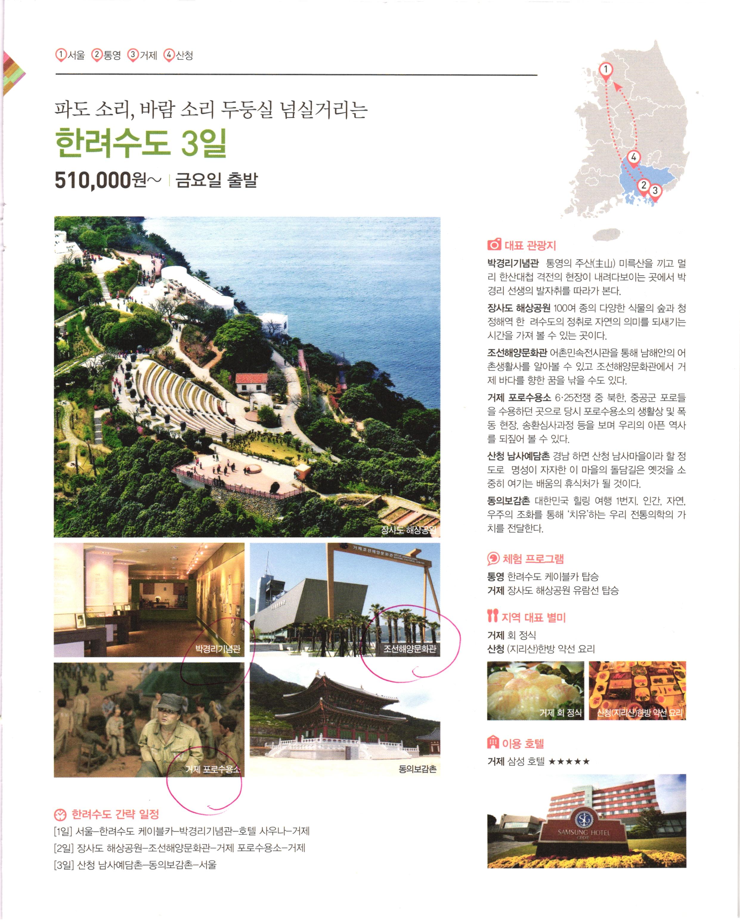 2019년에 받아서 읽었던 자료. 국내여행도 패키지로 가면 재밌으려나....해서 받아본 자료.