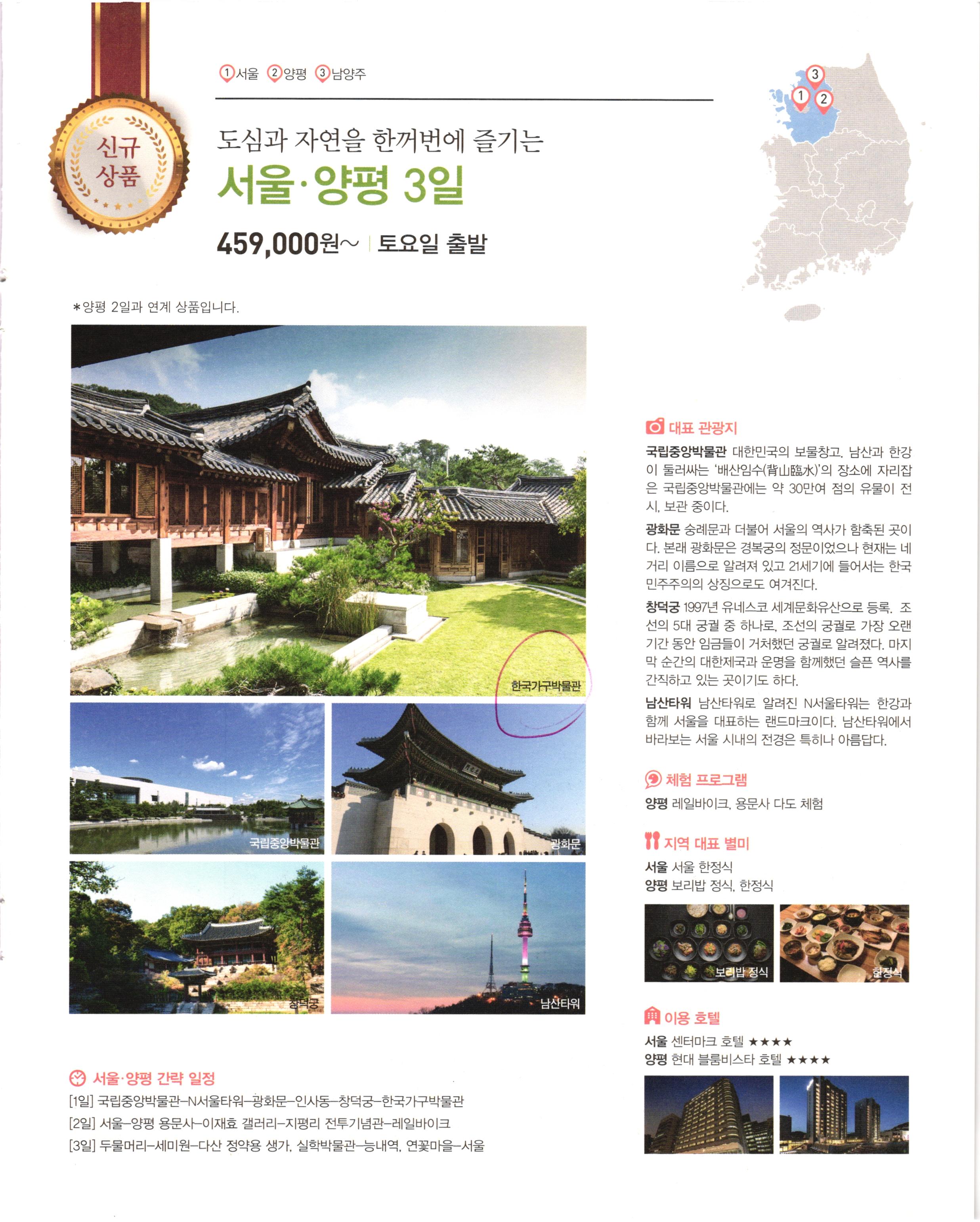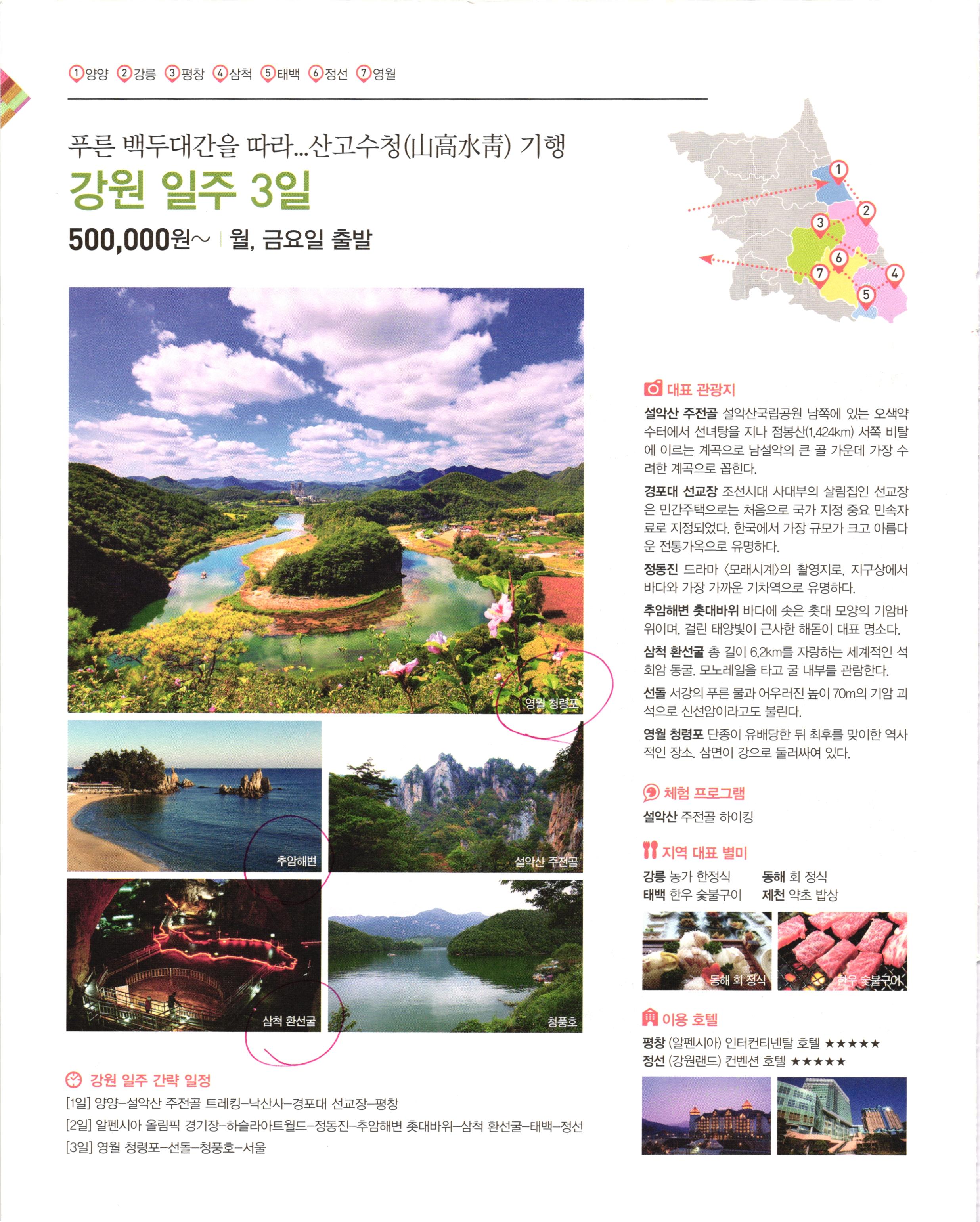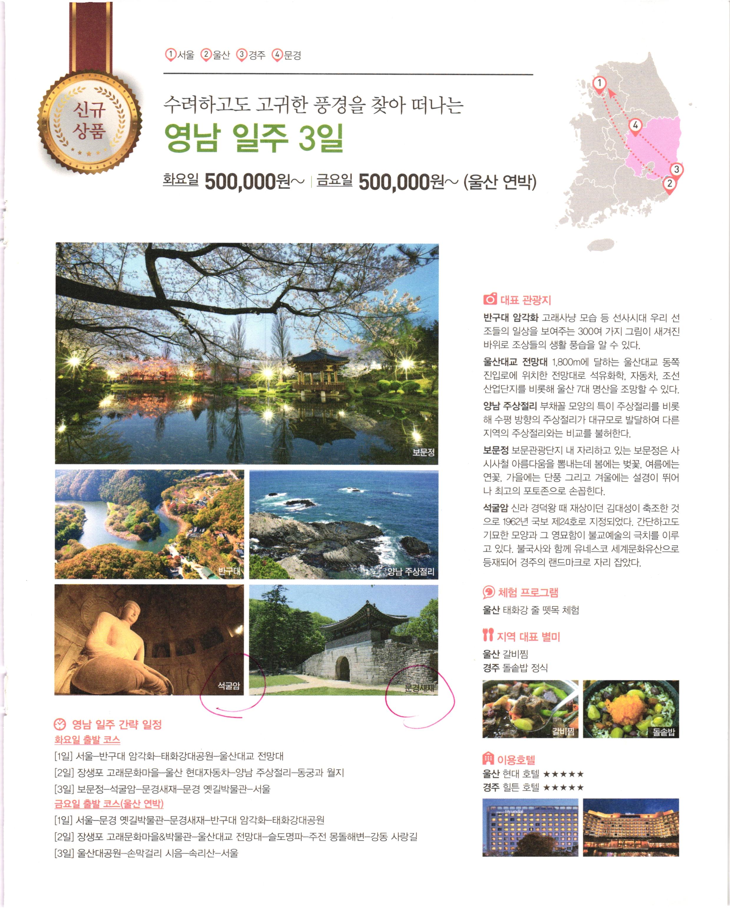 2019년에 받아서 읽었던 자료. 국내여행도 패키지로 가면 재밌으려나....해서 받아본 자료.