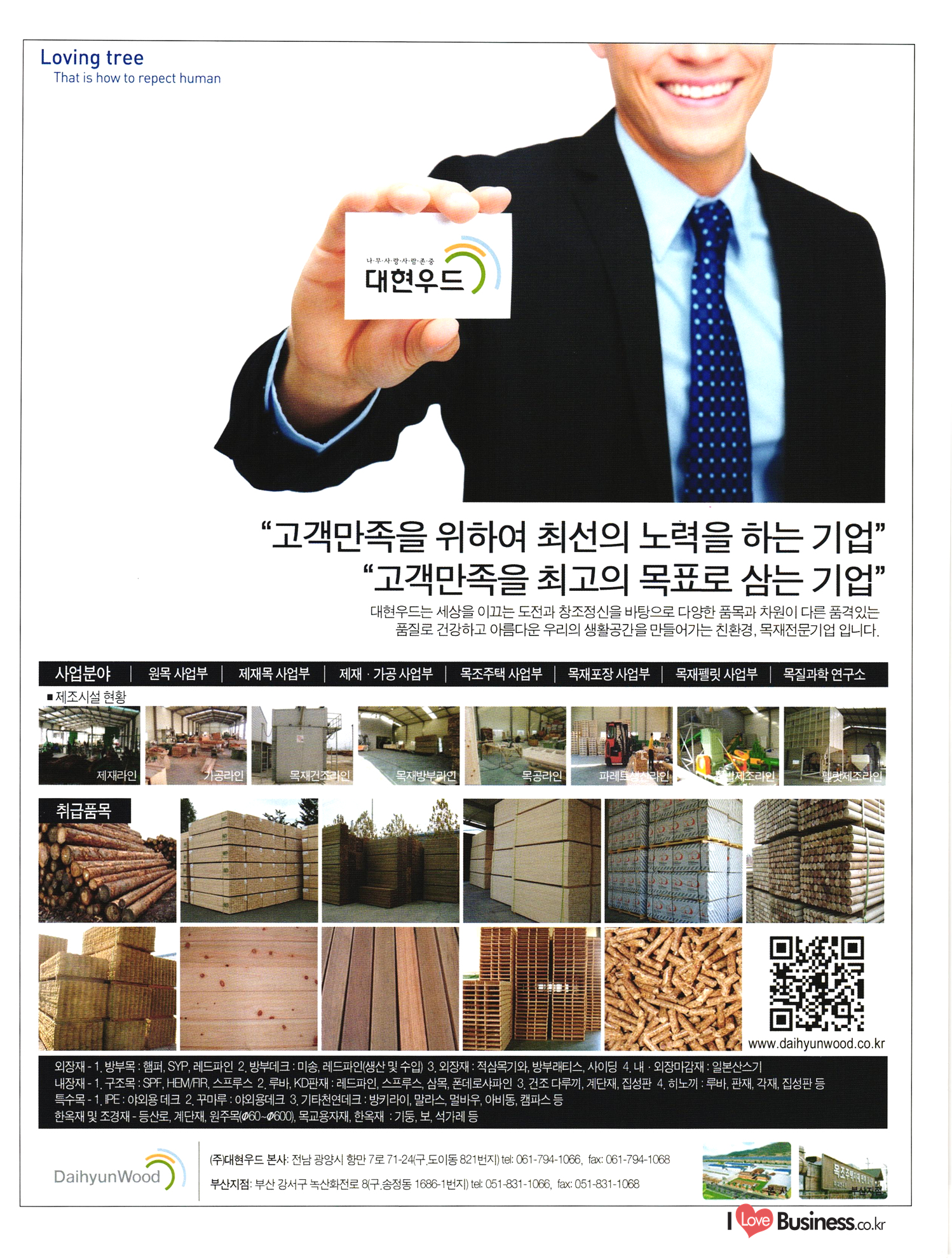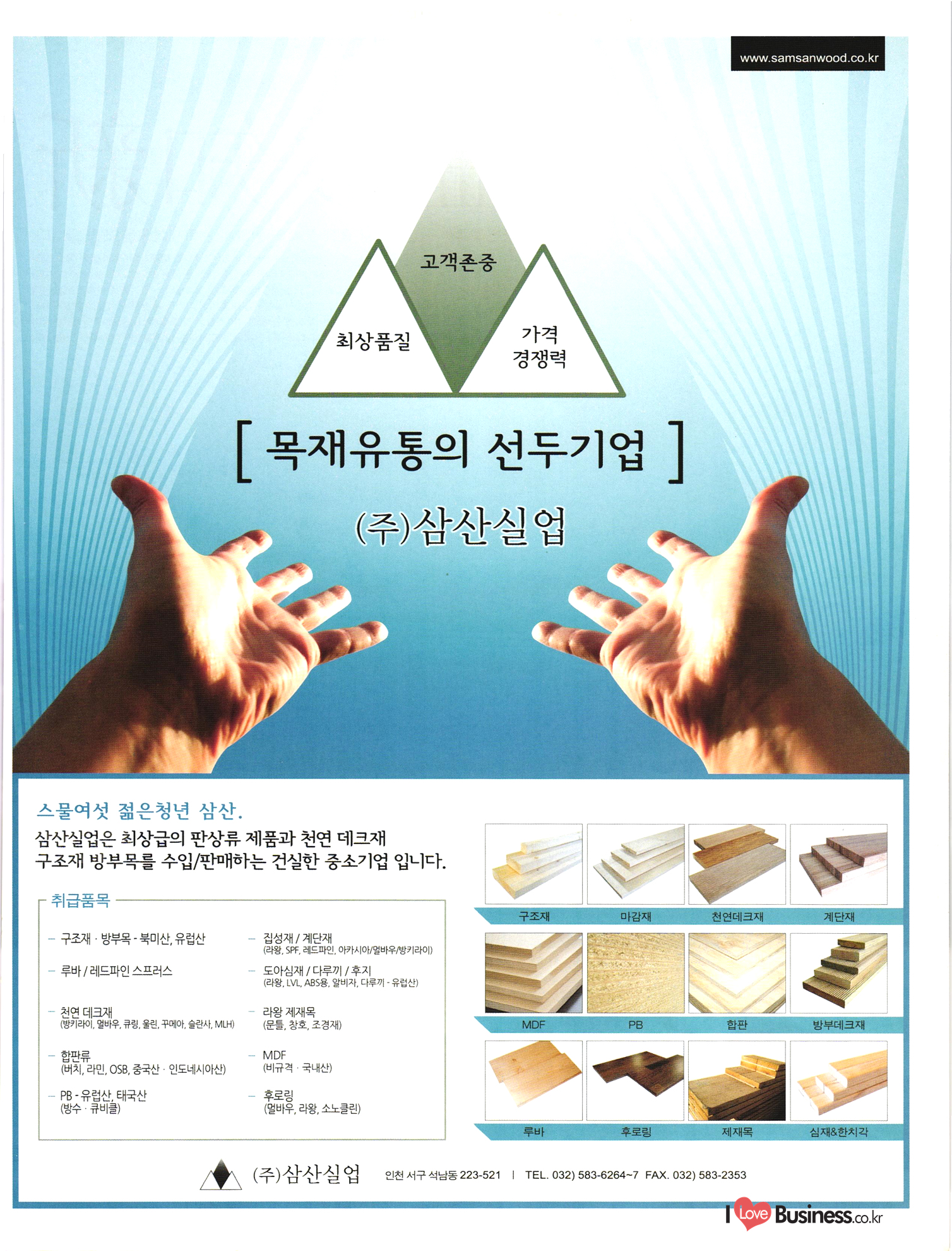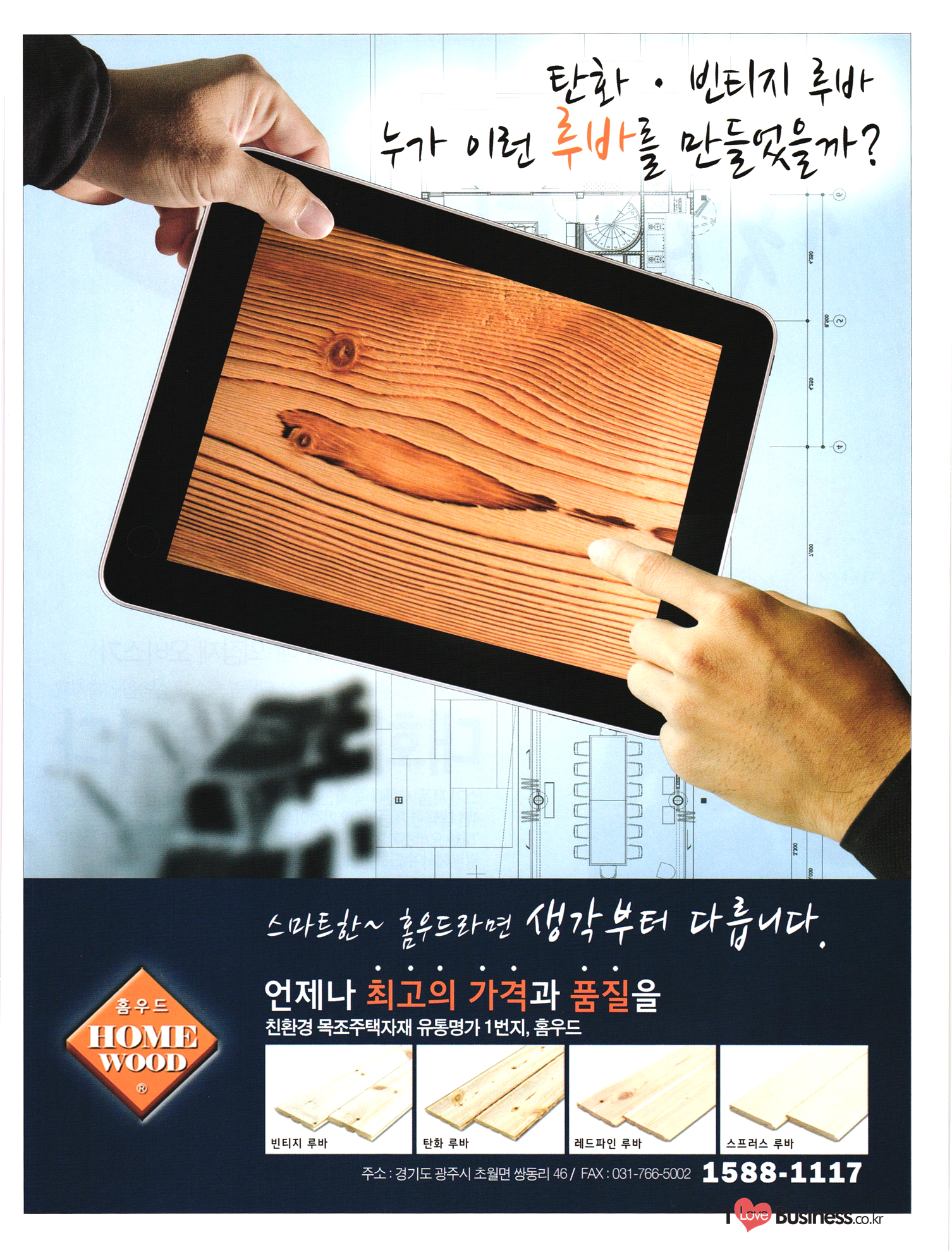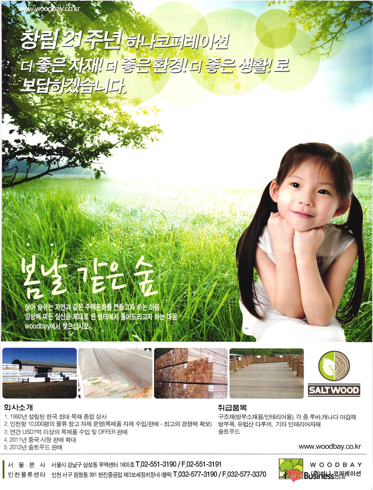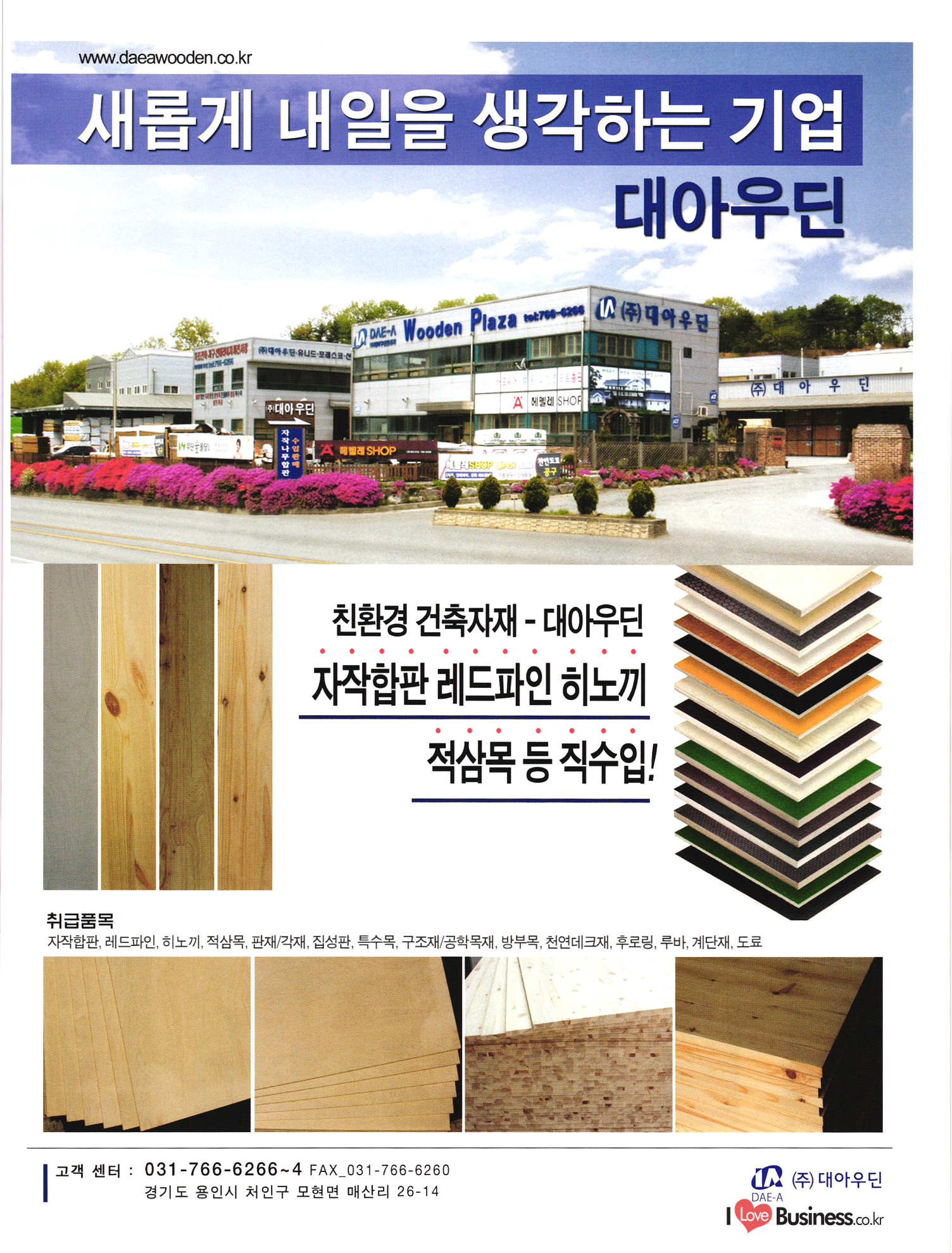 2013 목제품 가이드북 2013 The Wood Products Guide 젊은 생각, 젊은 기업 www.iwood.net 시베리안 라치 ЯК 모든 목조주택자재는 | 세상에서 가장 아름다운 우스에서 준비하세요 TIME 시장점유율 1위에 저렴한 가격! 우수한 품질! 유럽에서 가장많이 사용하는 무방부 데크재 건조 함수율 13% 2% (주)코리인터내셔널 방부목 적삼목/DIY가구/사이딩/집성목 소송건조목/루바/천연데크재 친환경 하드우드 합판 레드오크 화이트오크 하드메이플, 월넛 포름알데히드, 요소 유기화합물 무첨가 콩단백질 접착제 사용 고재 · 집정복 · 계단재 컬려루바 · 엔틱마루 · 엠보합판 구조재 · 자작합판콤비 NAVTR) 에 이 스 임 업 , 건조목, 방부목, 천연데크 032-578-5100 | 상아목재(주) : 032-564-4808 AKUREKSS ARDEW WOOD MWM ILIM TIMBER INTEREX VIT (주) 우덱스 목재 및 인테리어 자재 수입업체 www.woodex.co.kr 032.575.5289 IM Johns Manville WOODEX www.khori.co.kr 대표전하 : 070-7689-7600 C.