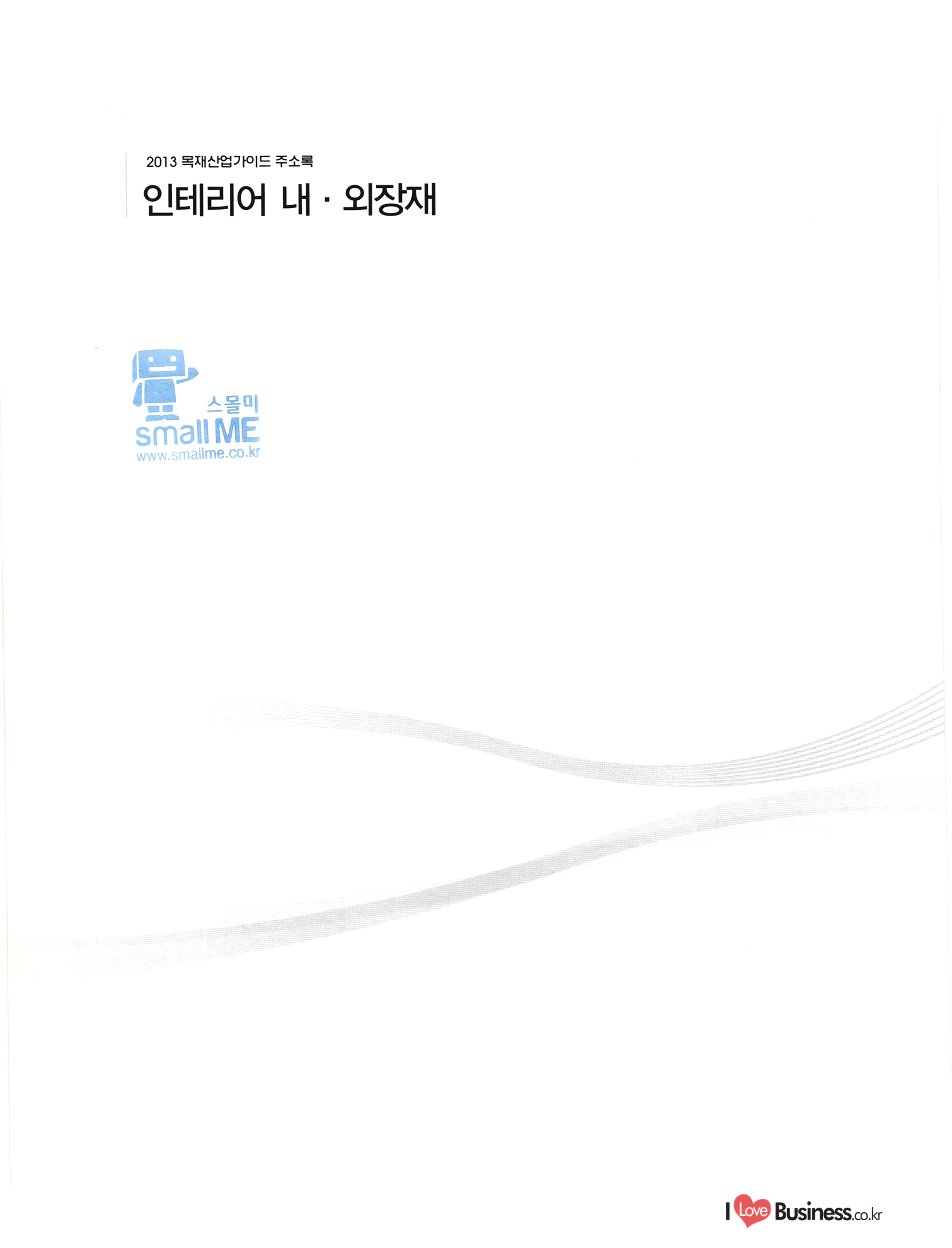 2013 목제품 가이드북 2013 The Wood Products Guide 젊은 생각, 젊은 기업 www.iwood.net 시베리안 라치 ЯК 모든 목조주택자재는 | 세상에서 가장 아름다운 우스에서 준비하세요 TIME 시장점유율 1위에 저렴한 가격! 우수한 품질! 유럽에서 가장많이 사용하는 무방부 데크재 건조 함수율 13% 2% (주)코리인터내셔널 방부목 적삼목/DIY가구/사이딩/집성목 소송건조목/루바/천연데크재 친환경 하드우드 합판 레드오크 화이트오크 하드메이플, 월넛 포름알데히드, 요소 유기화합물 무첨가 콩단백질 접착제 사용 고재 · 집정복 · 계단재 컬려루바 · 엔틱마루 · 엠보합판 구조재 · 자작합판콤비 NAVTR) 에 이 스 임 업 , 건조목, 방부목, 천연데크 032-578-5100 | 상아목재(주) : 032-564-4808 AKUREKSS ARDEW WOOD MWM ILIM TIMBER INTEREX VIT (주) 우덱스 목재 및 인테리어 자재 수입업체 www.woodex.co.kr 032.575.5289 IM Johns Manville WOODEX www.khori.co.kr 대표전하 : 070-7689-7600 C.