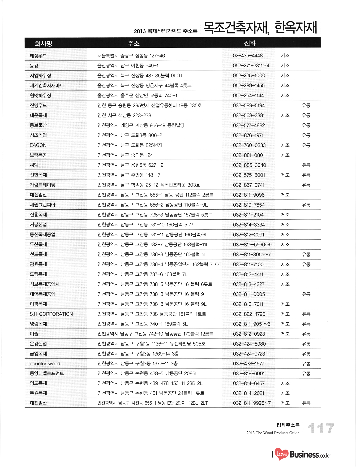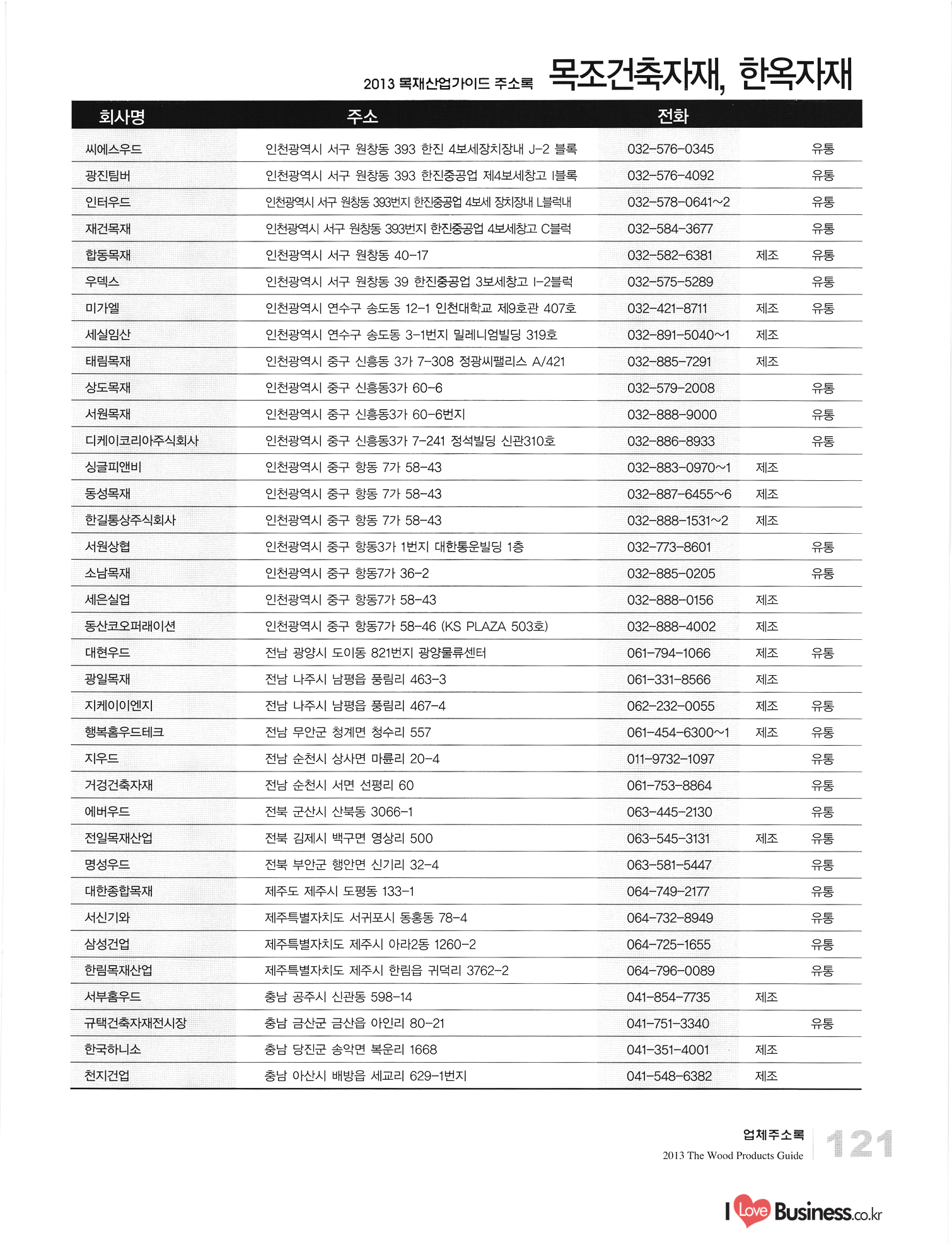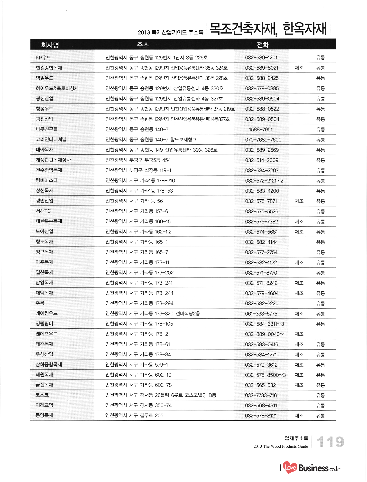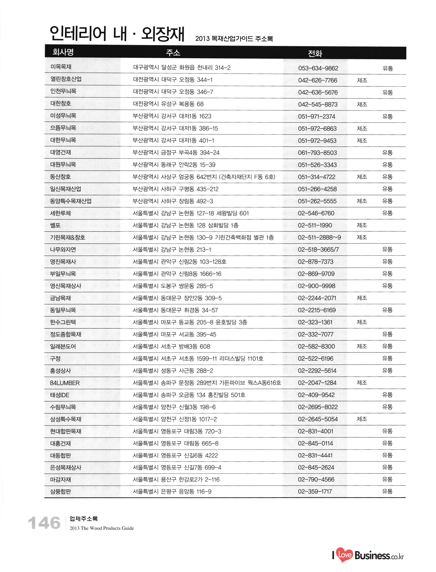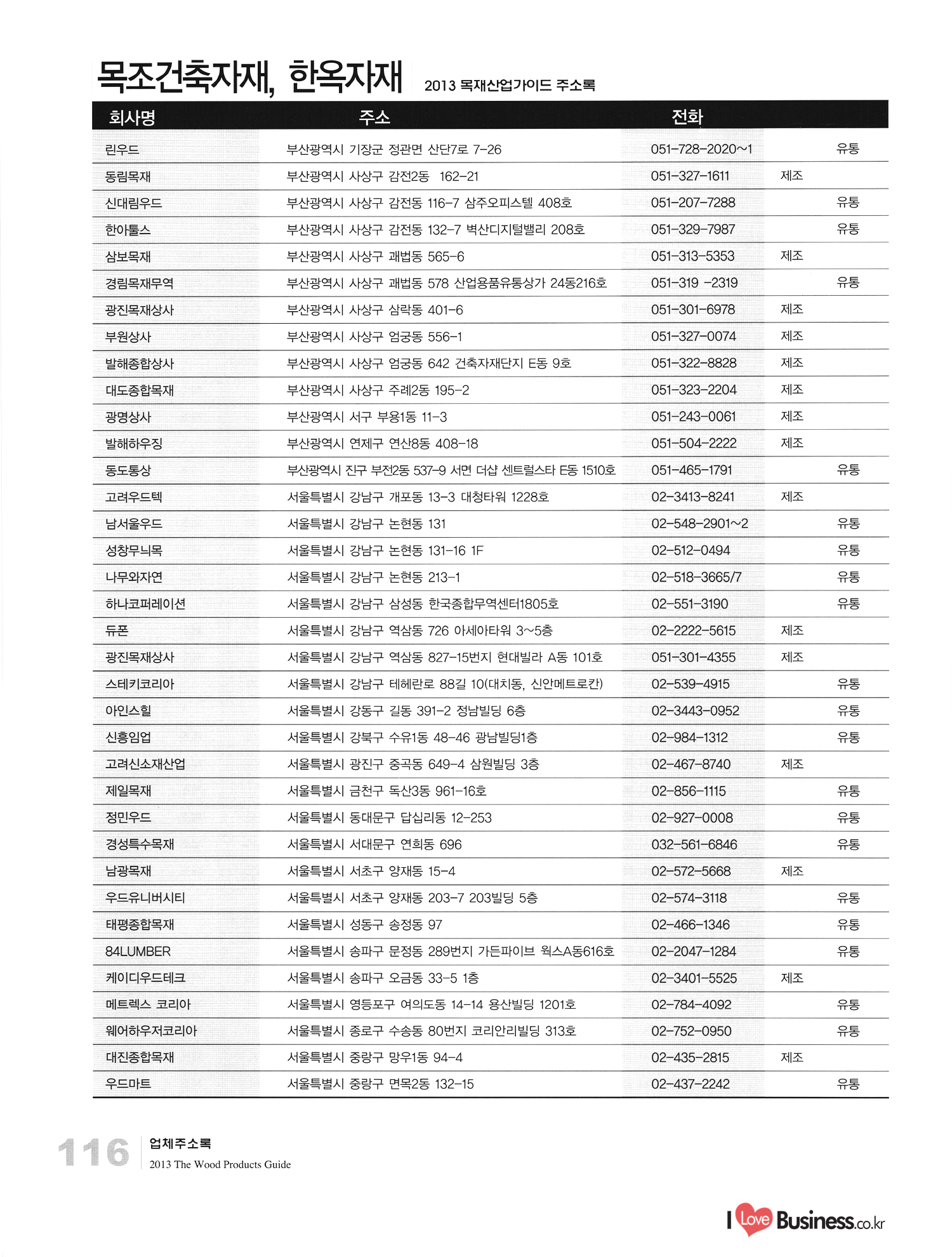 INDEX 84럼버 표지4 삼산실업 21 중부목재유통센터 구일특수목재 삼익산업 20 | 8 금진목재 상아목재 표지1, 23 철물마트 2 나무공작소 서림 청림목재후로링 8 나무친구들 서원상협 6 코리인터내셔날 표지1, 1 내외건장 8 서현BM 태원 9 네베상사 HEINC 태화목재 8 2 다우통상 신성엠티엠 툴스토리 6 8 대아우딘 씨에스우드 펀앤하비 7 5 대전목립 표지2 에스디 프라임팀버 8 대현우드 에스오엔지산업 하나코퍼레이션 3 대화 에이스임업. 한국목조건축협회 1 표지1 74 | 동부목재유통센터 에이원우드후로링 4 한국써튼티드 한국DIY가구공방협회 동성리에코 엔에스홈 3 동양우드산업 영림목재 한양유니버설 8 동우켐 우덱스 표지1, 33, 43 헤펠레코리아 5 동화자연마루 우드뱅크 현성종합목재 4 두남금속 우드케어 호막코리아 8 린우드 우딘 홈우드 5 명원목재 윈우드 황금목재합판 6 범양교역 유원우드 후너스 4 보쉬코리아 CM목공기계 8 인터우드 전일팀버 빌드매니아 DIY&리폼 박람회 표지 3 ILoveBusiness.co.kr