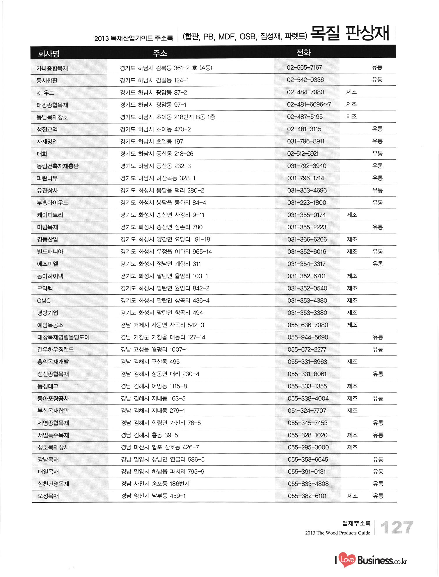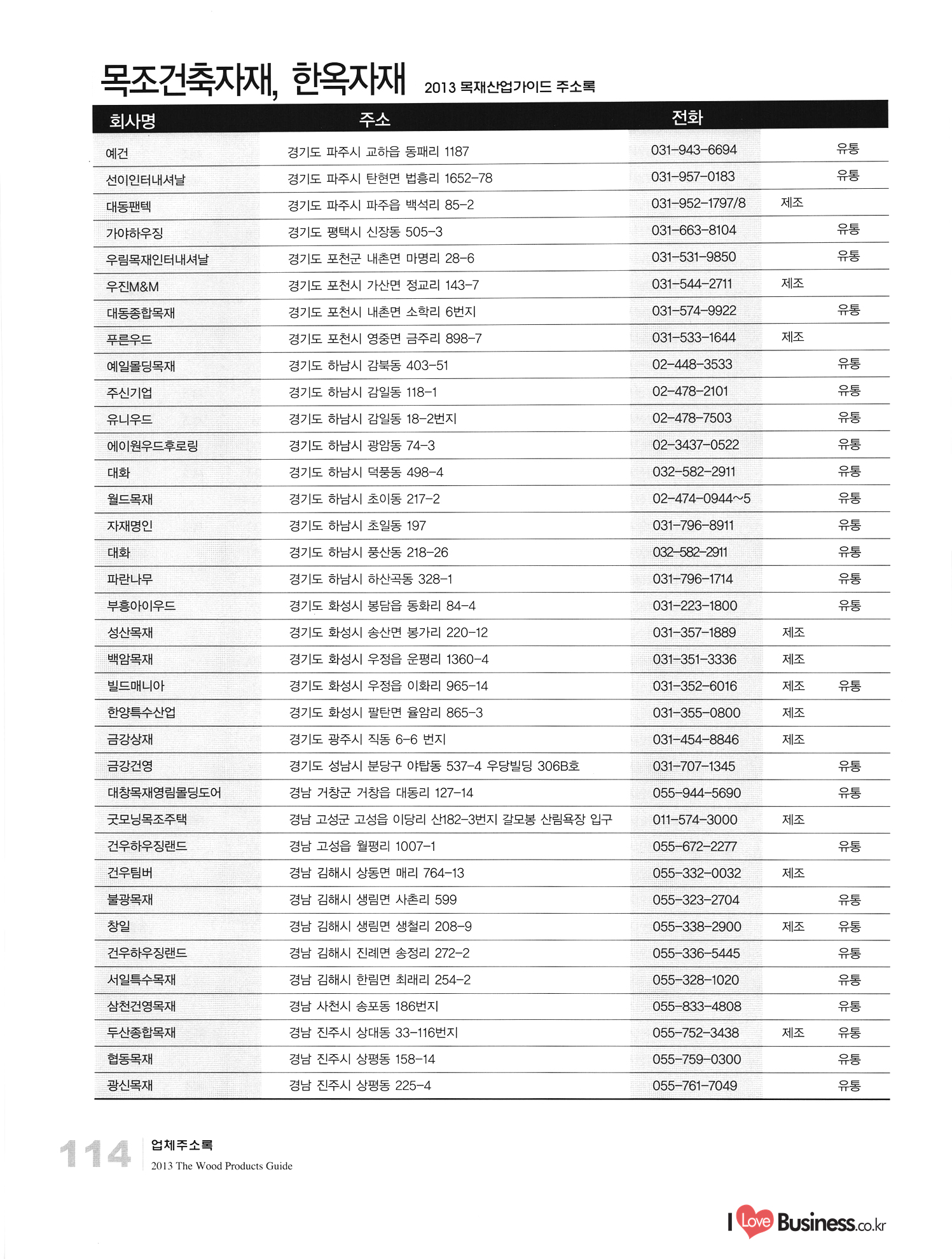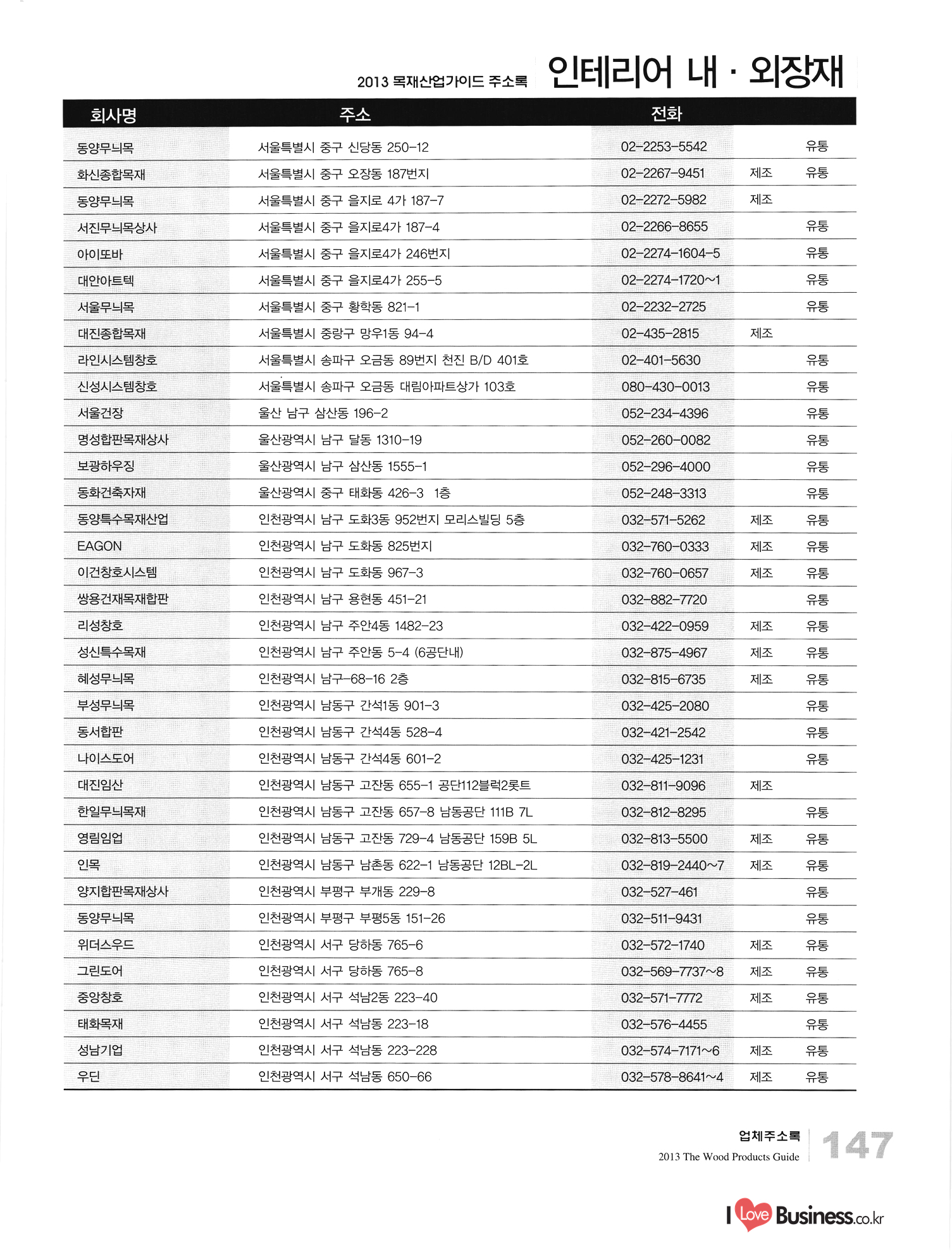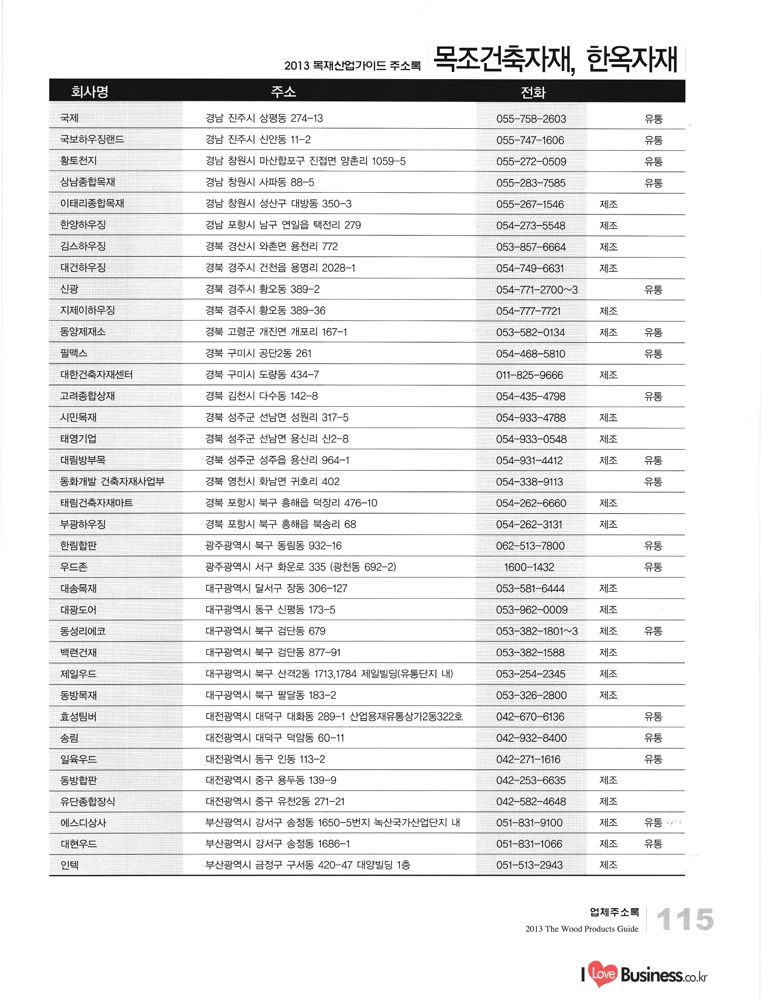 INDEX 84럼버 표지4 삼산실업 21 중부목재유통센터 구일특수목재 삼익산업 20 | 8 금진목재 상아목재 표지1, 23 철물마트 2 나무공작소 서림 청림목재후로링 8 나무친구들 서원상협 6 코리인터내셔날 표지1, 1 내외건장 8 서현BM 태원 9 네베상사 HEINC 태화목재 8 2 다우통상 신성엠티엠 툴스토리 6 8 대아우딘 씨에스우드 펀앤하비 7 5 대전목립 표지2 에스디 프라임팀버 8 대현우드 에스오엔지산업 하나코퍼레이션 3 대화 에이스임업. 한국목조건축협회 1 표지1 74 | 동부목재유통센터 에이원우드후로링 4 한국써튼티드 한국DIY가구공방협회 동성리에코 엔에스홈 3 동양우드산업 영림목재 한양유니버설 8 동우켐 우덱스 표지1, 33, 43 헤펠레코리아 5 동화자연마루 우드뱅크 현성종합목재 4 두남금속 우드케어 호막코리아 8 린우드 우딘 홈우드 5 명원목재 윈우드 황금목재합판 6 범양교역 유원우드 후너스 4 보쉬코리아 CM목공기계 8 인터우드 전일팀버 빌드매니아 DIY&리폼 박람회 표지 3 ILoveBusiness.co.kr