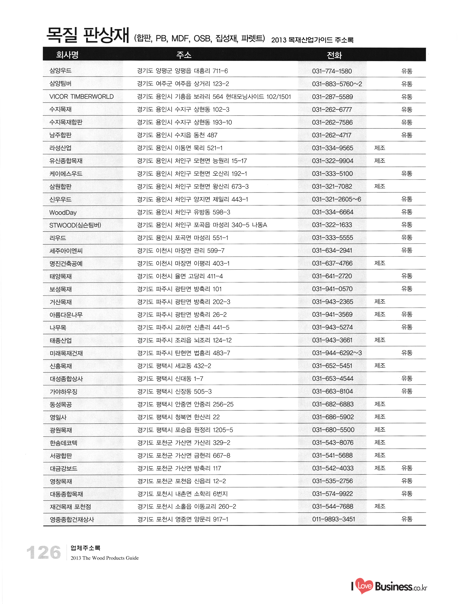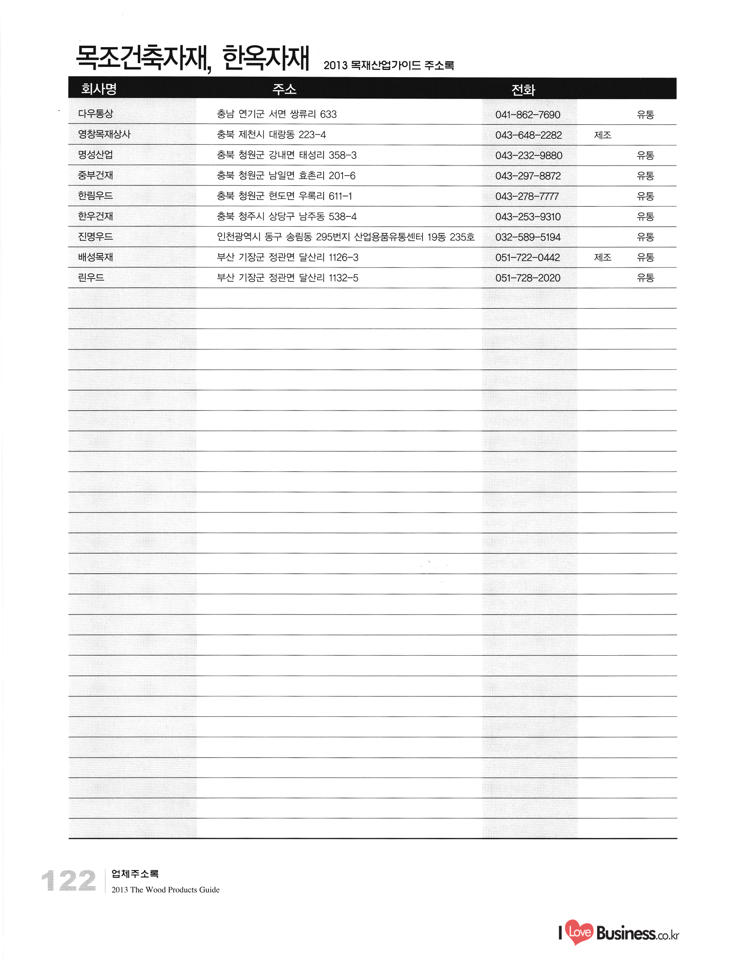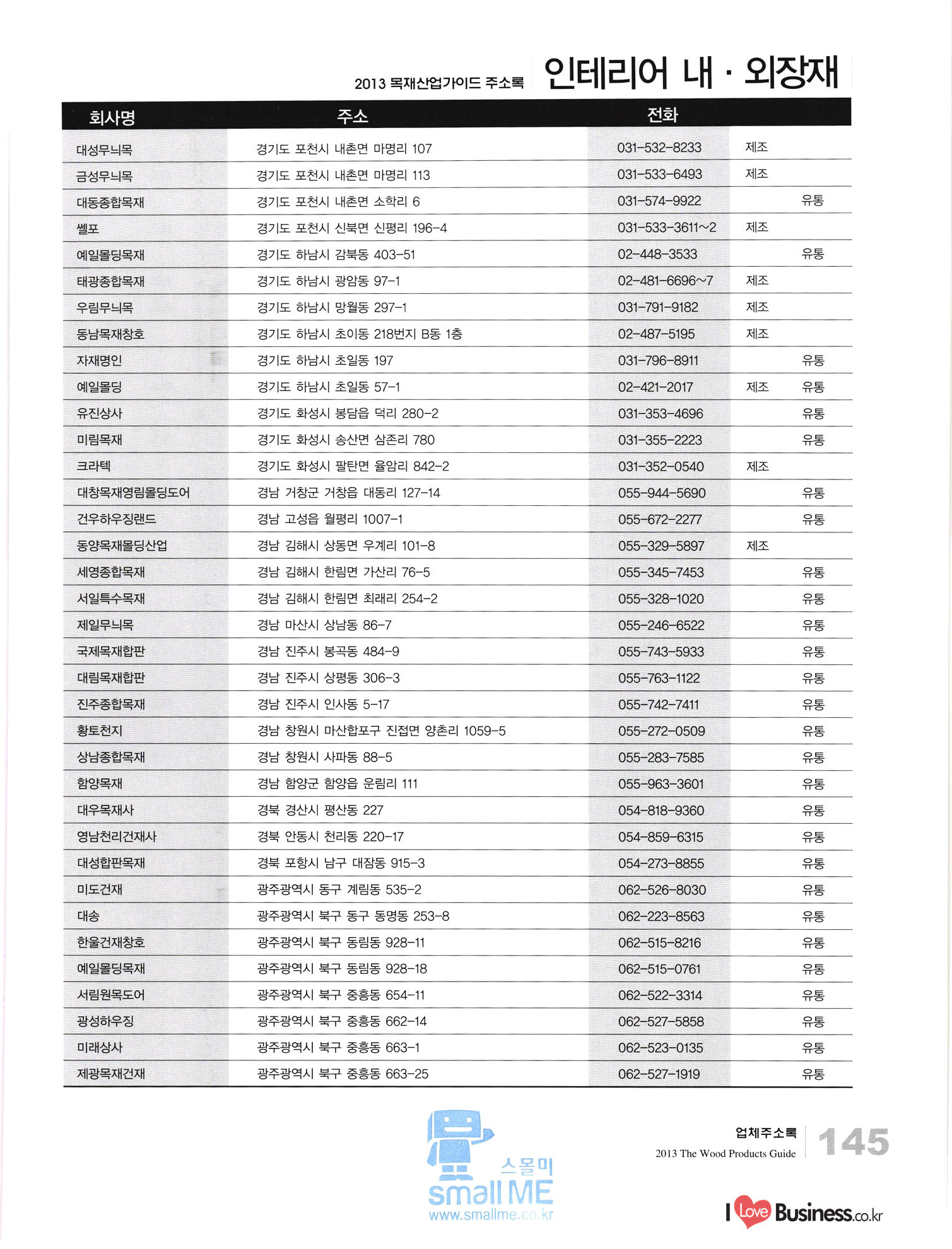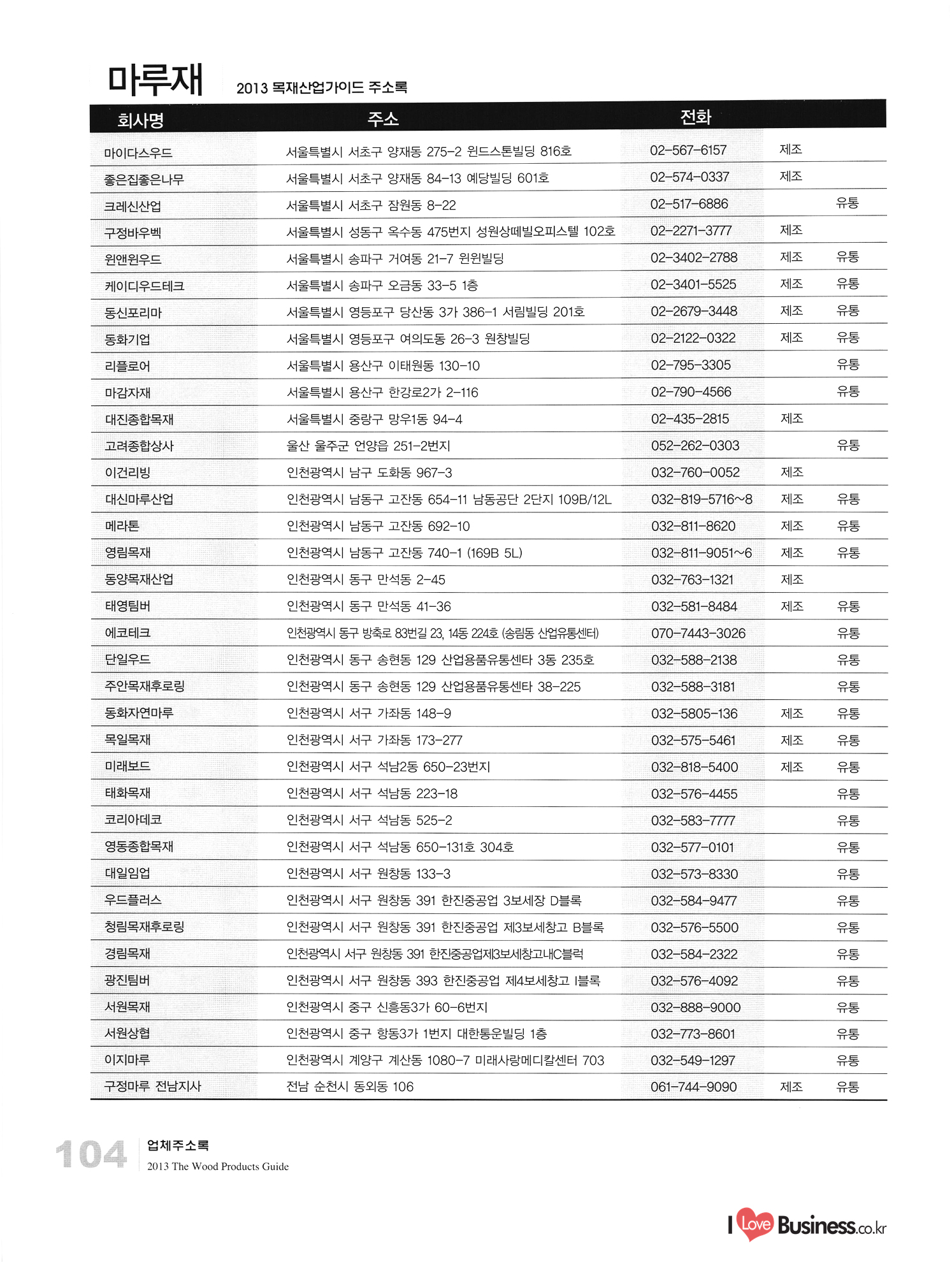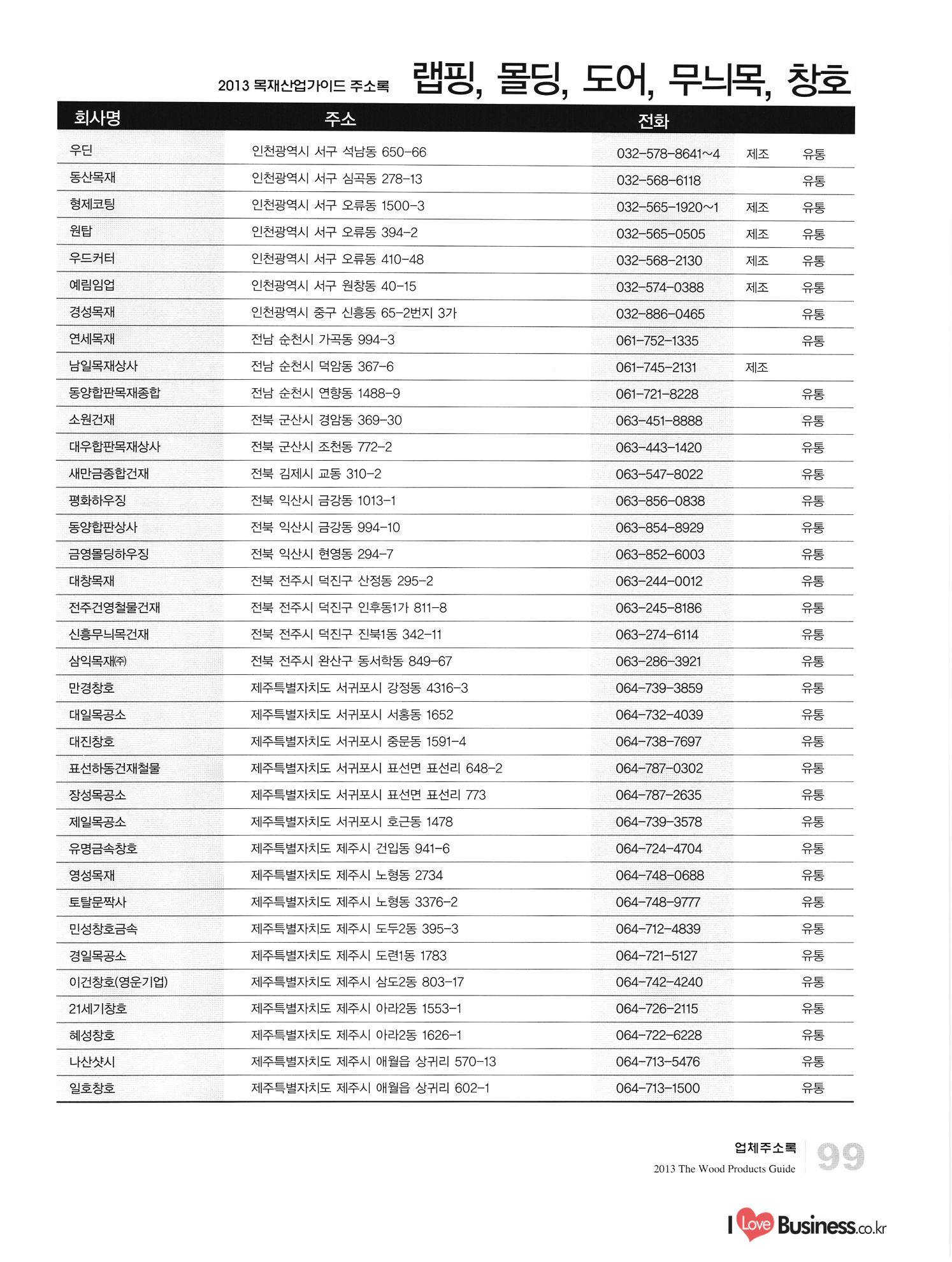 INDEX 84럼버 표지4 삼산실업 21 중부목재유통센터 구일특수목재 삼익산업 20 | 8 금진목재 상아목재 표지1, 23 철물마트 2 나무공작소 서림 청림목재후로링 8 나무친구들 서원상협 6 코리인터내셔날 표지1, 1 내외건장 8 서현BM 태원 9 네베상사 HEINC 태화목재 8 2 다우통상 신성엠티엠 툴스토리 6 8 대아우딘 씨에스우드 펀앤하비 7 5 대전목립 표지2 에스디 프라임팀버 8 대현우드 에스오엔지산업 하나코퍼레이션 3 대화 에이스임업. 한국목조건축협회 1 표지1 74 | 동부목재유통센터 에이원우드후로링 4 한국써튼티드 한국DIY가구공방협회 동성리에코 엔에스홈 3 동양우드산업 영림목재 한양유니버설 8 동우켐 우덱스 표지1, 33, 43 헤펠레코리아 5 동화자연마루 우드뱅크 현성종합목재 4 두남금속 우드케어 호막코리아 8 린우드 우딘 홈우드 5 명원목재 윈우드 황금목재합판 6 범양교역 유원우드 후너스 4 보쉬코리아 CM목공기계 8 인터우드 전일팀버 빌드매니아 DIY&리폼 박람회 표지 3 ILoveBusiness.co.kr