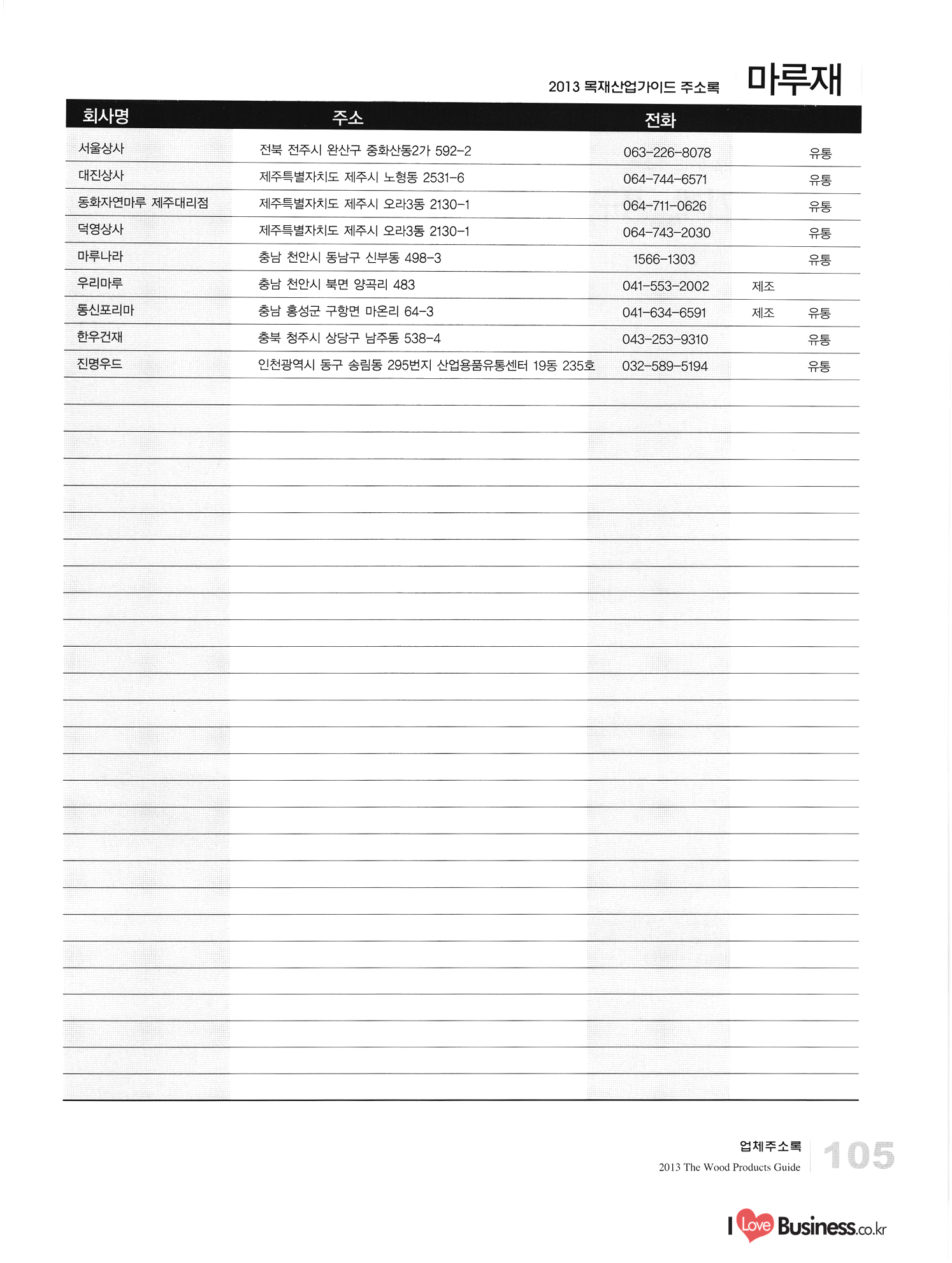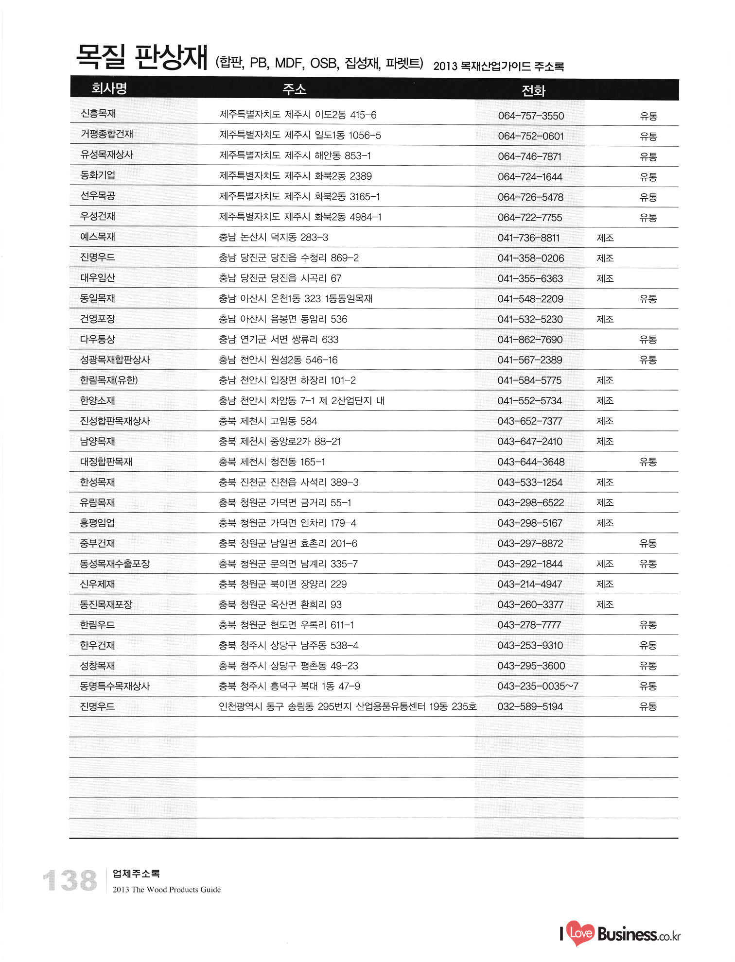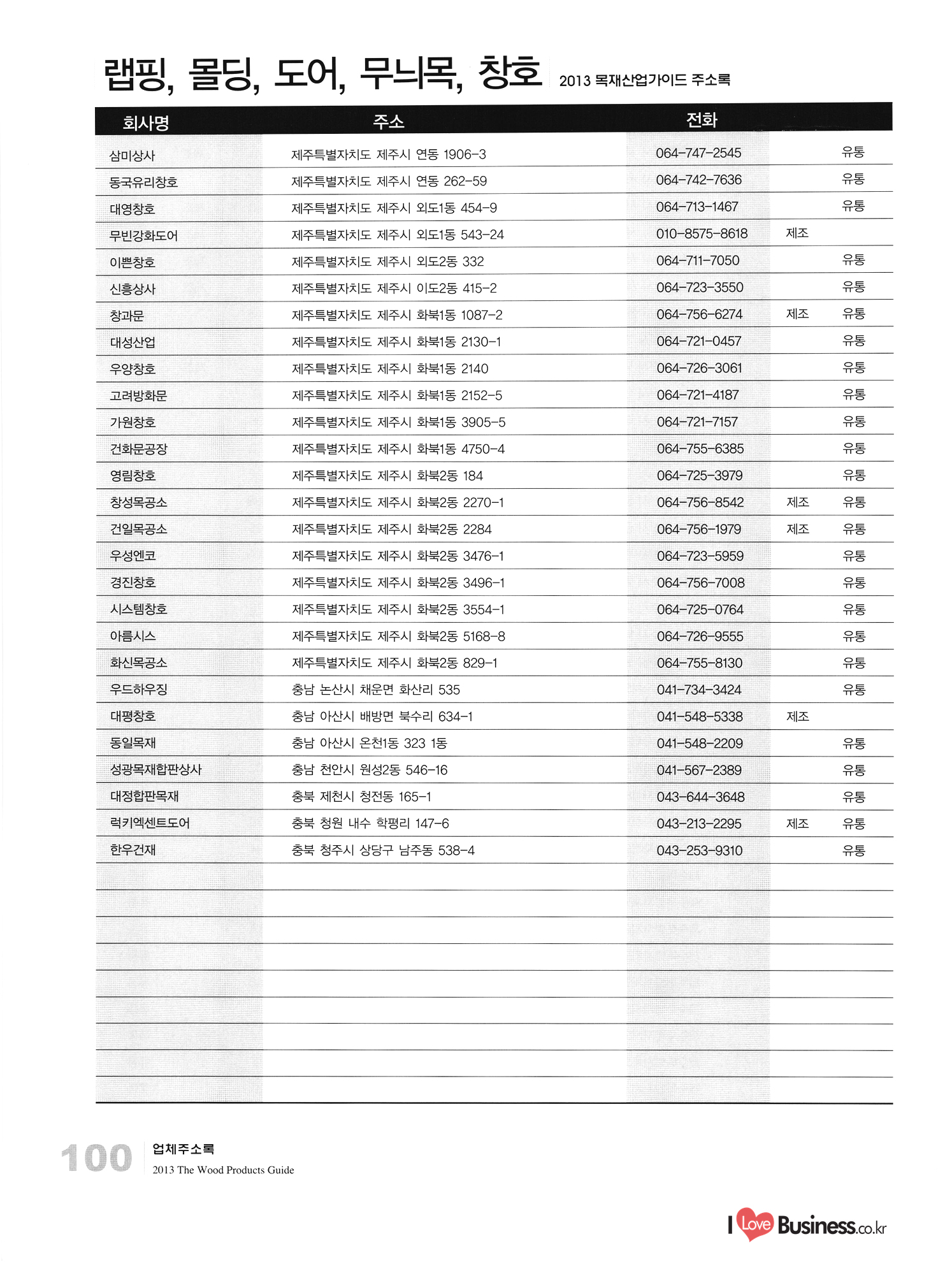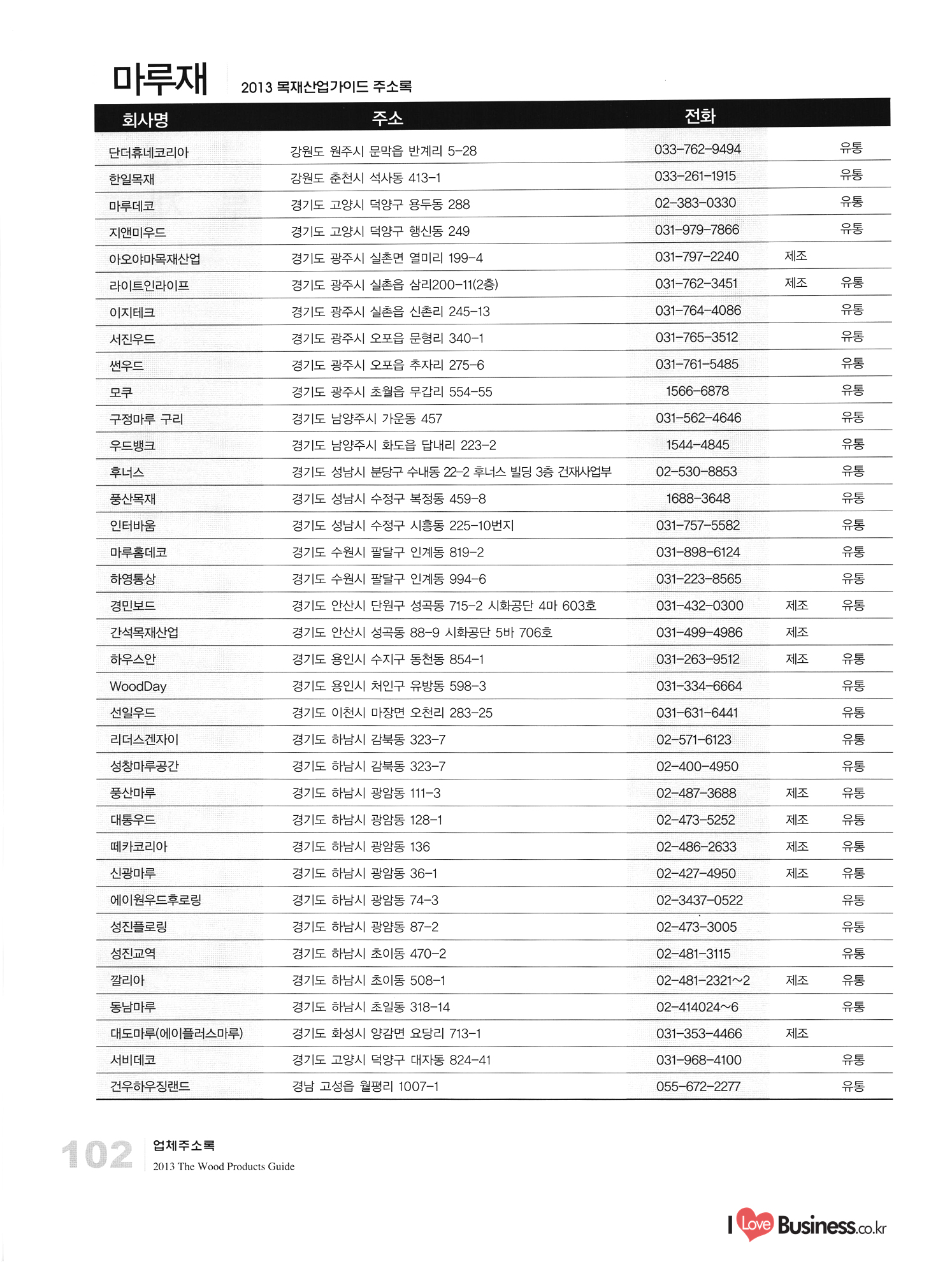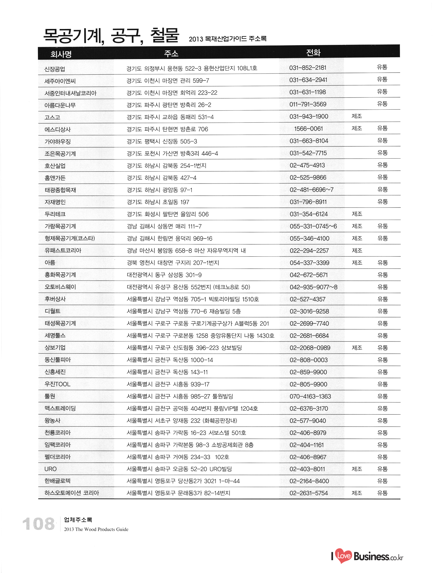 INDEX 84럼버 표지4 삼산실업 21 중부목재유통센터 구일특수목재 삼익산업 20 | 8 금진목재 상아목재 표지1, 23 철물마트 2 나무공작소 서림 청림목재후로링 8 나무친구들 서원상협 6 코리인터내셔날 표지1, 1 내외건장 8 서현BM 태원 9 네베상사 HEINC 태화목재 8 2 다우통상 신성엠티엠 툴스토리 6 8 대아우딘 씨에스우드 펀앤하비 7 5 대전목립 표지2 에스디 프라임팀버 8 대현우드 에스오엔지산업 하나코퍼레이션 3 대화 에이스임업. 한국목조건축협회 1 표지1 74 | 동부목재유통센터 에이원우드후로링 4 한국써튼티드 한국DIY가구공방협회 동성리에코 엔에스홈 3 동양우드산업 영림목재 한양유니버설 8 동우켐 우덱스 표지1, 33, 43 헤펠레코리아 5 동화자연마루 우드뱅크 현성종합목재 4 두남금속 우드케어 호막코리아 8 린우드 우딘 홈우드 5 명원목재 윈우드 황금목재합판 6 범양교역 유원우드 후너스 4 보쉬코리아 CM목공기계 8 인터우드 전일팀버 빌드매니아 DIY&리폼 박람회 표지 3 ILoveBusiness.co.kr