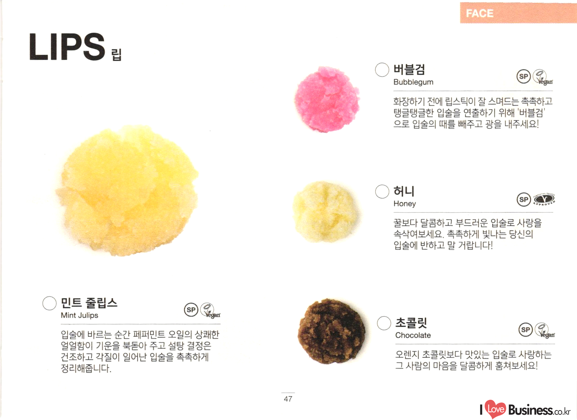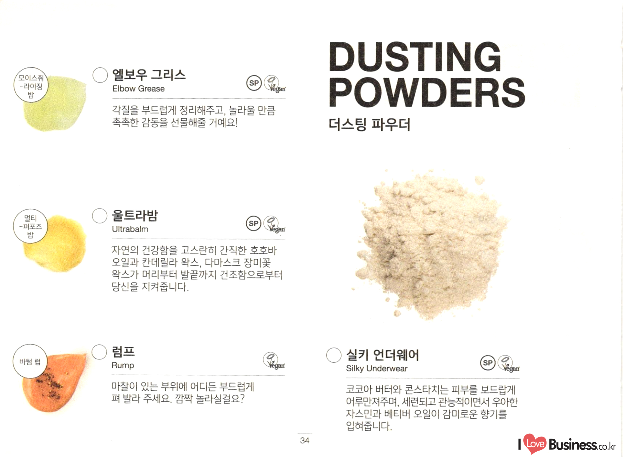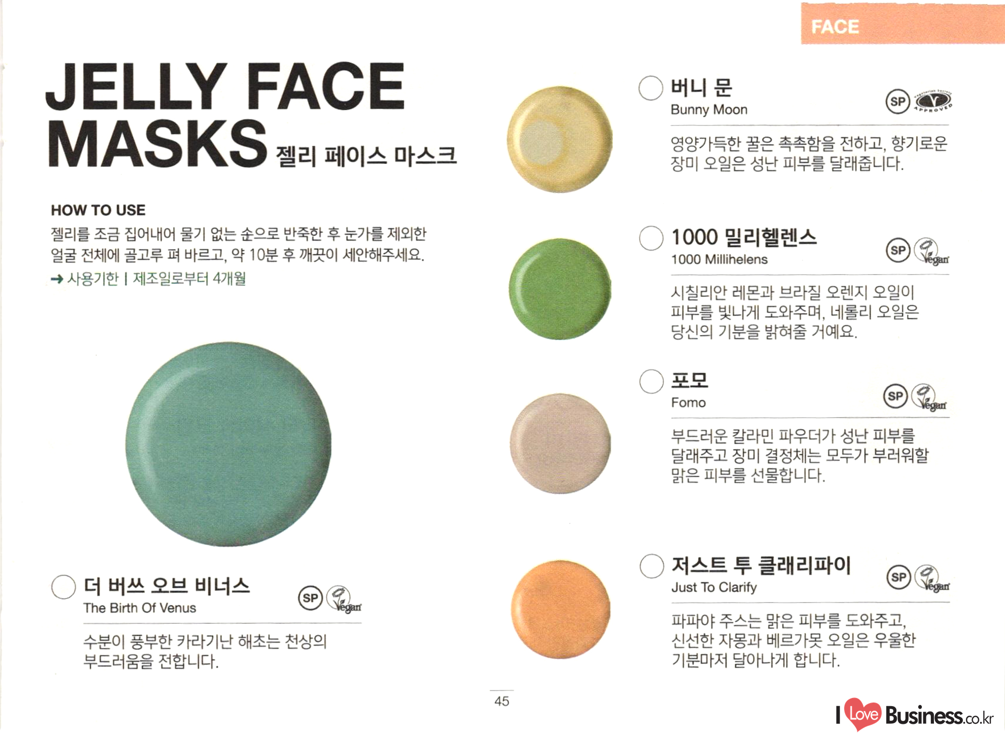 FACE ○ 스킨즈 샹그릴라 Skin's Shangri La ○ 매지컬 모링가 프라이머 Magical Moringa 겨울의 건조하고 차가운 공기로부터 피부를 건강하게 보호하고, 밤 사이 피부의 숙면을 도와주는 나이트 크림으로 효과적입니다. 오래전부터 사용됐던 세계 곳곳의 호화로운 오일과 버터를 듬뿍 담았습니다. () 스킨 드링크 Skin Drink 페이셜 세럼 풀 오브 그레이스 Full Of Grace vegar 건조함으로부터 피부의 촉촉함을 보호해주는 얇은 층을 형성하여 어떠한 날씨에 사용해도 잘 어울리고, 특히 풍부한 영양과 수분으로 피부의 갈증을 덜어줍니다. 고체 형태의 페이셜 세럼은 부담 없이 피부에 영양분을 보충해줍니다. 칼라민 파우더를 듬뿍 담아 과도한 피지는 조절해주고 번들거림 없이 산뜻한 촉촉함을 선사합니다. 손가락 끝으로 부드럽게 녹이거나 피부에 미끄 러지듯 문질러주고 영양 가득한 버터와 재료들이 충분히 흡수될 수 있도록 마사지해주세요. HOW TO USE ○ 임페리얼리스 Imperialis 가벼운 질감의 크림에 듬뿍 담은 허브는 피부 를 위풍당당하고 아름다운 모습으로 회복시 . 켜줍니다. 피부가 필요로 하는 것이 어떤 건지 확신이 서지 않을 때 사용하길 추천합니다. ○ 그리스 라이트닝 스 트리트먼트 Grease Lightning Vegant () 엔지미온 Enzymion Vegan 피부에 상처를 남기지 않고 봉오리진 뾰루지 를 말끔히 처단해주는 신선한 재료들을 듬뿍 담았습니다. 언제나 예방이 치료보다 낫다는 사실, 기억하세요! 깨끗한 손가락으로 소량을 뾰루지가 올라온 부위에 두드리듯 발라주세요. 뾰루지가 완전히 자리 잡기 전에 사용하면 더 효과적입니다! HOW TO USE 신선한 레몬 하나를 통째로 담아 피부의 번들 거림을 잡아주며, 갓 딴 파파야와 코코아 버터 는 피부를 산뜻하고 촉촉하게 가꿔줍니다.