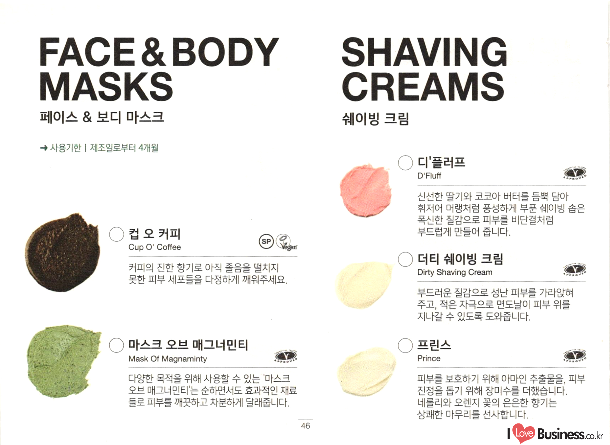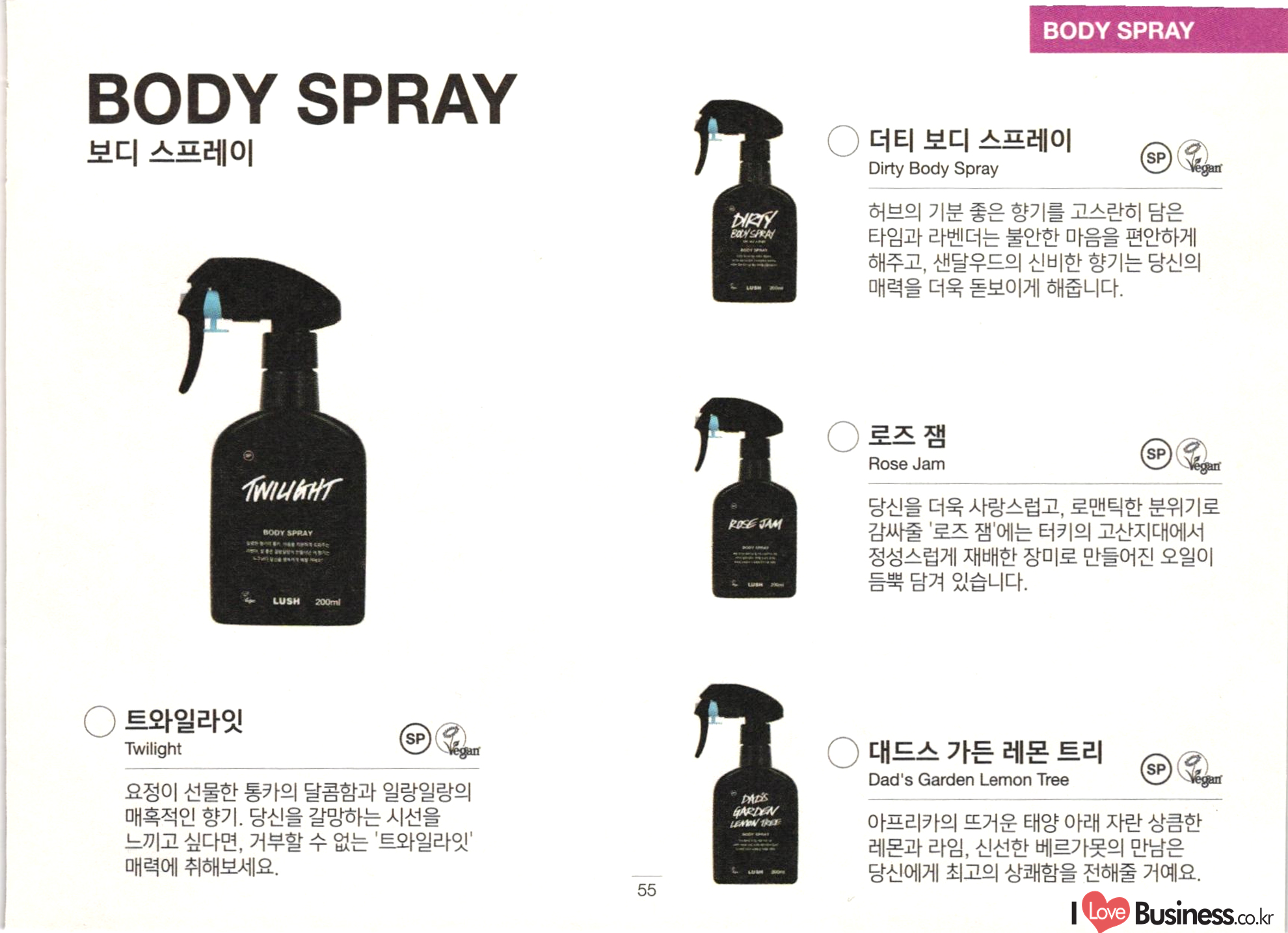 Enjoy your Lush products Bath Hair Face 배쓰 밤 / Bath Bombs 38 40 젤리 밤 / Jelly Bombs 버블 바 / Bubble Bars 배쓰 오일 / Bath Oils 40 샴푸 바 / Shampoo Bars 샴푸 / Shampoo 헤어 컨디셔너 / Hair Conditioners 고체 컨디셔너 / Solid Conditioners 핫 오일 트리트먼트 / Hot Oil Treatments 헤어 트리트먼트 / Hair Treatments 7||04 52|18/ Hair Dressing 43 L! / Fun 페이스 & 보디 클렌저 / Face & Body Cleansers AZ17||04/Skin Care 토너 / Toners 페이스 마스크 / Face Masks 젤리 페이스 마스크 / Jelly Face Masks 페이스 & 보디 마스크 / Face & Body Masks 쉐이빙 크림 / Shaving Creams 립 / Lips 메이크 업 / Make up A0 47 Shower 49 Body 마사지 바 / Massage Bars 솝 / Soaps 샤워 젤 / Shower Gels 보디 버터 / Body Butters Gorilla Perfume 50 샤워 젤리 / Shower Jellies 보디 컨디셔너 / Body Conditioners 샤워 스크럽 / Shower Scrubs 19 Body Spray 55 보디 로션 / Body Lotions 더스팅 파우더 / Dusting Powders 핸드 / Hands 풋 / Feet | 10 Lush Spa 57 1 ONLINE | 러쉬코리아 웹사이트에서만 만날 수 있습니다. EXTENDED | 지정 매장에서만 만날 수 있습니다. (명동역점, 강남역점, 이태원역점, 신세계백화점 센텀시티몰점) 고릴라 퍼퓸 블랙 라벨 | 스타필드 코엑스점, 명동역점, 강남역점, 러쉬코리아 웹사이트에서만 만날 수 있습니다.