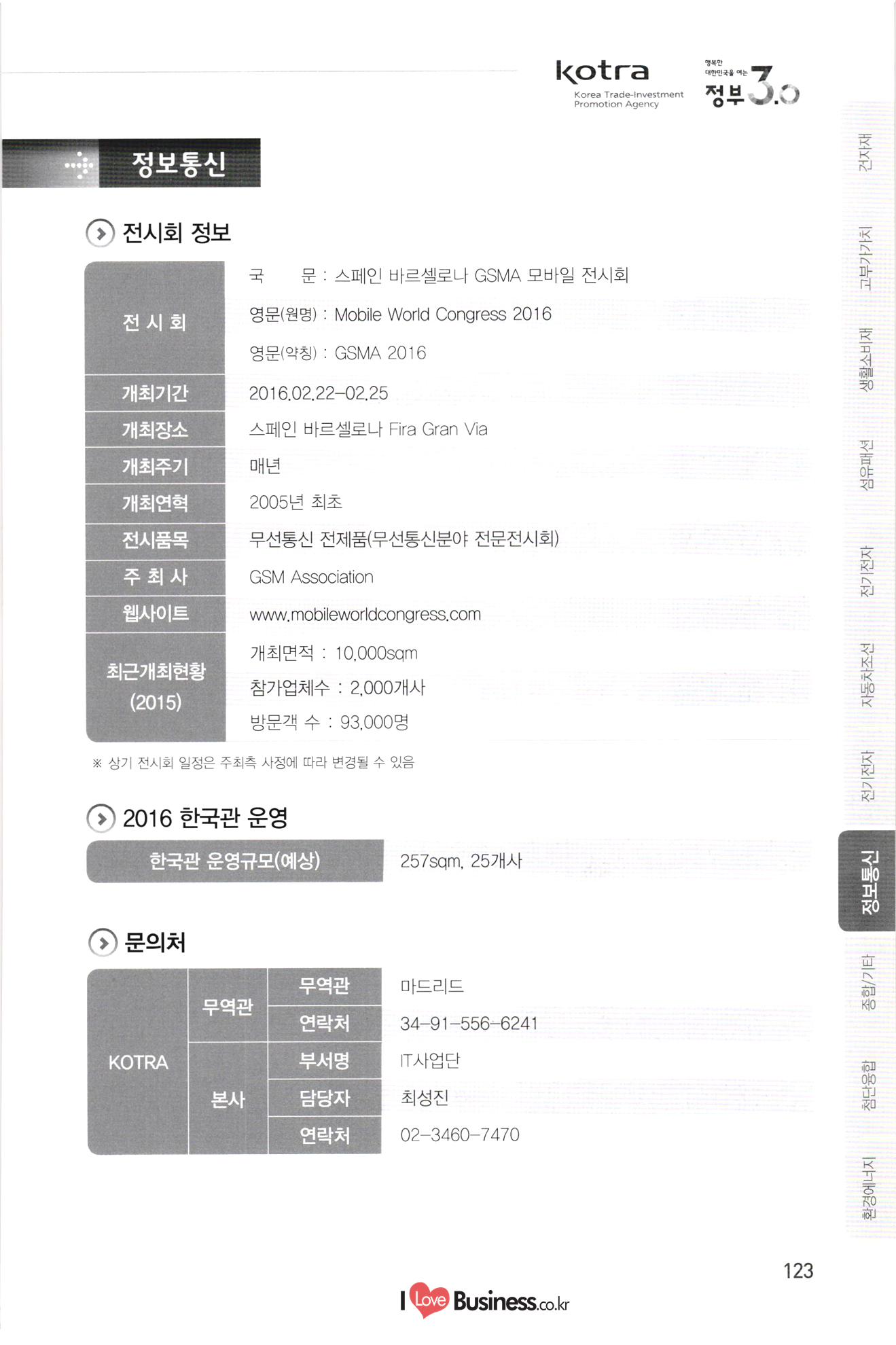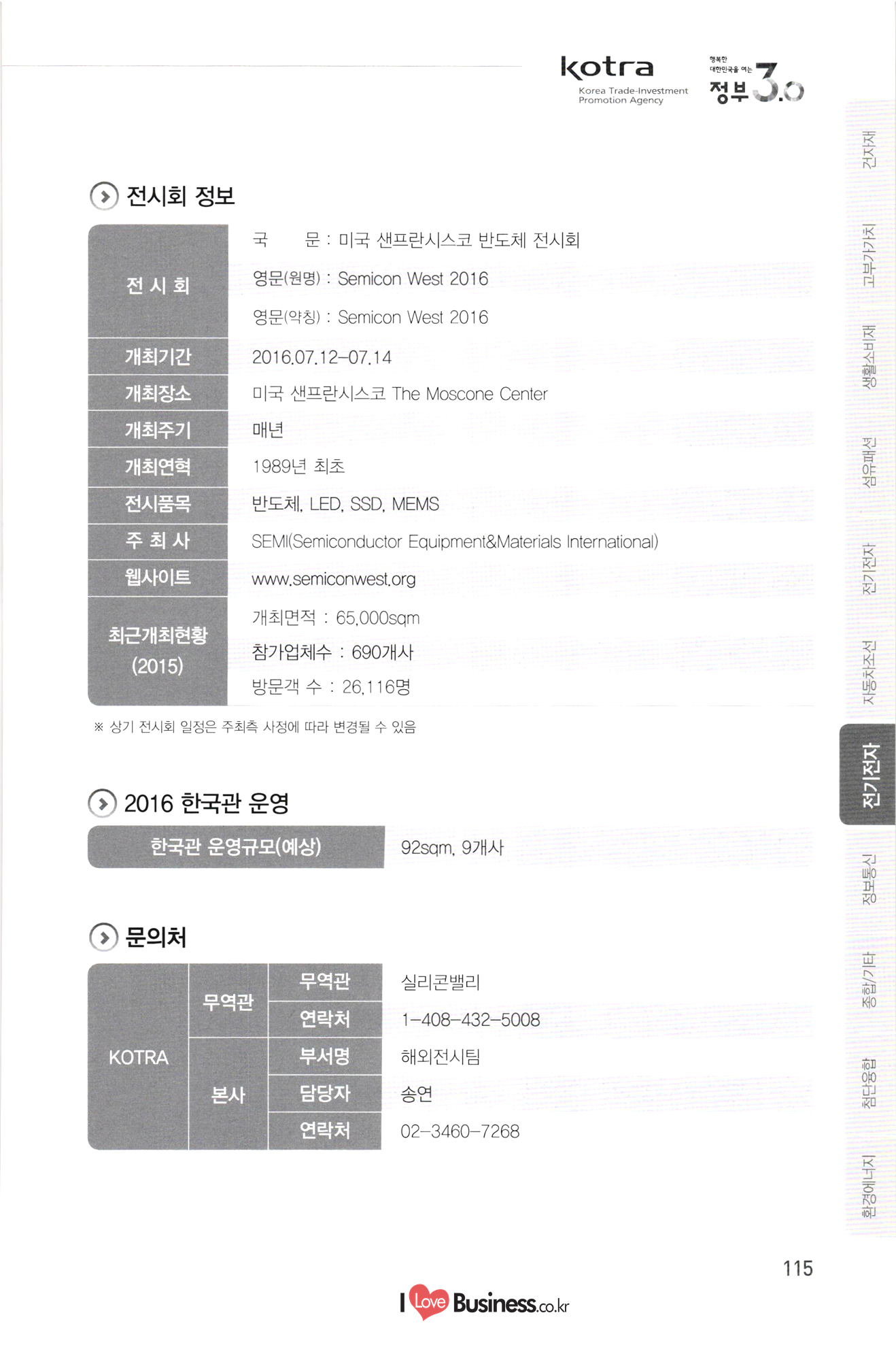 kotra 행복한 대한민국을 여는 Korea Trade-Investment Promotion Agency | 정부 0.0 기간 페이지 110 111 112 113 114 0106-0109 0216-0218 0315-0317 0315-0317 0406-0408 10712-0714 10906-0909 1 0907-0909 0920-0925 1 1013-1016 1106-1109 1108-1110 1108-1111 115 116 117 118 119 120 121 122 전시회명 전기전자 미국 라스베가스 소비재 전자 전시회 미국 샌프란시스코 광학 전시회 중국 상하이 반도체 전시회 중국 상하이 플랫패널 디스플레이 전시회 미국 라스베가스 보안기기 전시회 및 컨퍼런스 미국 샌프란시스코 반도체 전시회 중국 선전 광전자 전시회 대만 타이베이 반도체 전시회 독일 쾰른 영상 및 광학기기 전시회 홍콩 추계 전자 전시회 이란 테헤란 전기 전시회 중국 상하이 아시아 전자 전시회 독일 뮌헨 전자부품 전시회 | 정보통신 스페인 바르셀로나 GSMA 모바일 전시회 독일 하노버 정보통신 전시회 - 중국 선전 전자정보 전시회 싱가포르 정보통신 전시회 중국 상하이 모바일 전시회 미국 라스베가스 무선통신 전시회 UAE 두바이 정보통신 전시회 중국 선전 터치스크린 전시회 종합/기타 중국 상하이 화동 수출입상품 교역회 파나마 종합 전시회 베트남 하노이 엑스포 중국 톈진 무역투자 상담회 및 PECC 무역투자 전시회 중국 광저우 춘계 수출입상품 교역회 중국 시안 동서부 투자무역합작 상담회 및 실크로드 전시회 중국 하얼빈 경제무역 전시회 탄자니아 다레살람 무역 전시회 123 124 125 0222-0225 0314-0318 10408-0410 1 0531-0603 0629-0701 1 0907-0909 1016-1020 1124-1126 126 127 128 129 130 131 132 133 0301-0305 0309-0312 10413-0416 0415-0419 0415-0419 0513-0517 0615-0619 134 135 136 137. 10701-0705 138